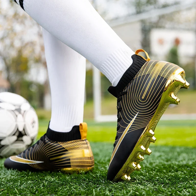 - > Profissional homens tornozelo botas de futebol ao ar livre chuteiras de grama unisex sapatos de futebol longos picos tf sapatos de futebol chuteira sociedade