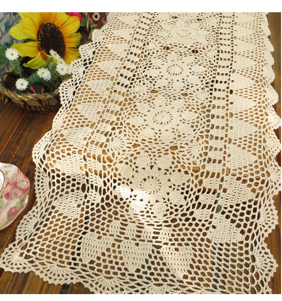Projeto das Flores Artesanais de algodão Toalha de Mesa Corredor Da Tabela De Malha Usado para Decoração de Mesa de Televisão 1 Pçs/lote