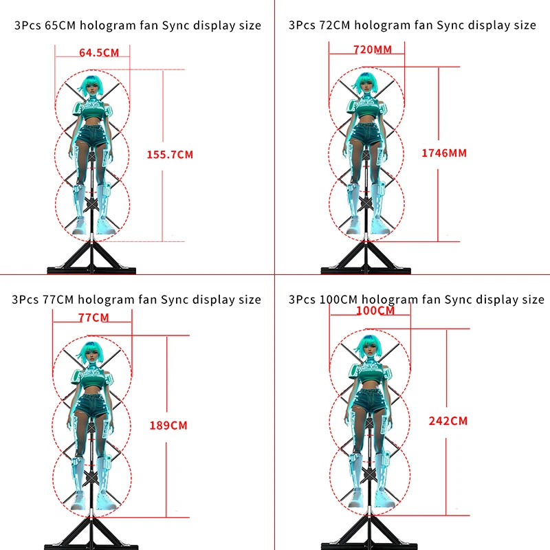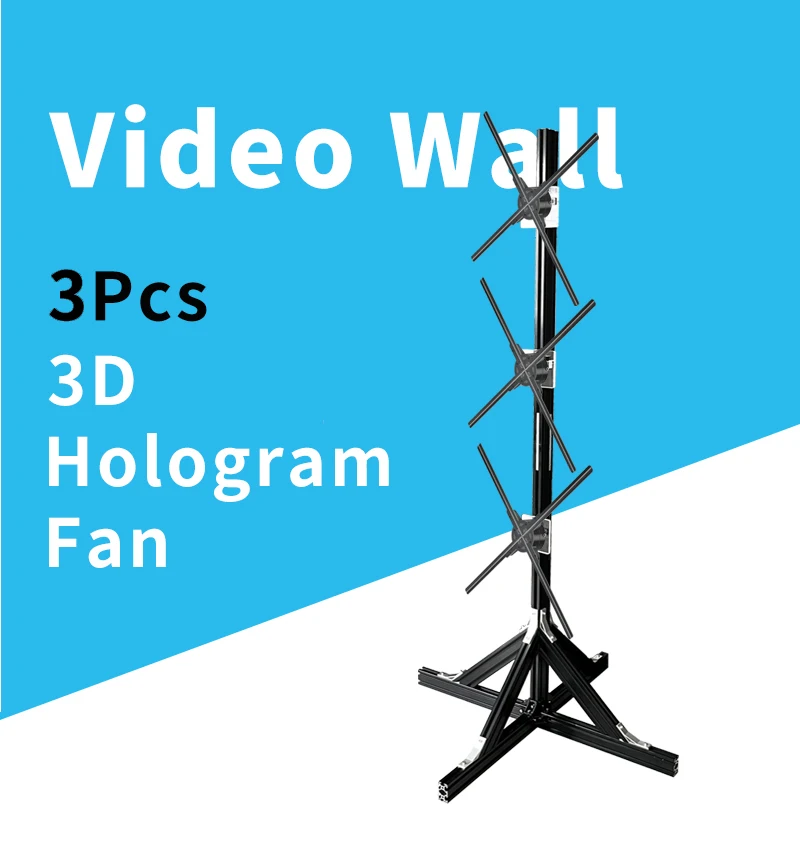 Projetor de holograma 3pcs, parede de vídeo com sincronização, projetor de holograma para publicidade, display de ventilador LED 3D para eventos e Ano Novo.