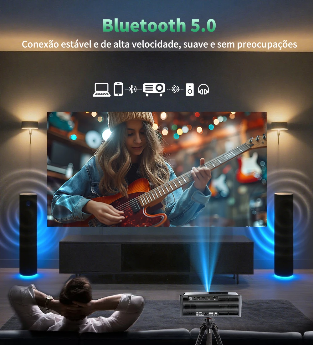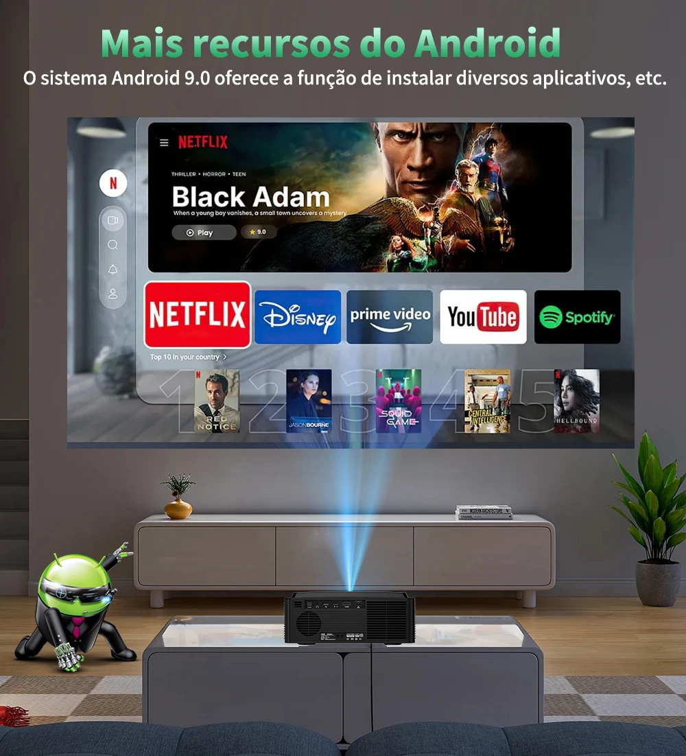 Qualidade de imagem 4K ultra-alta definição + baixa latência Bluetooth 5.2 transmissão projetor, banda dupla wi-fi estável e sem travamentos! Instalação gratuita de aplicativos no sistema Android Smart, sem necessidade de tela, pronto para usar, desde assistir séries na sala até jogar, cada quadro de detalhes é nítido como no cinema. Projetor prático