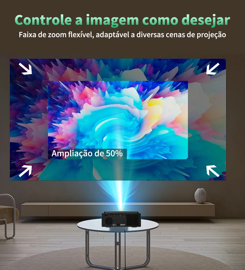 Faixa de zoom flexível, adaptável a diversas cenas de projeção