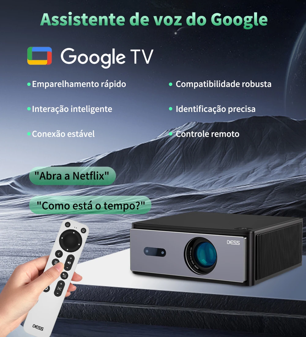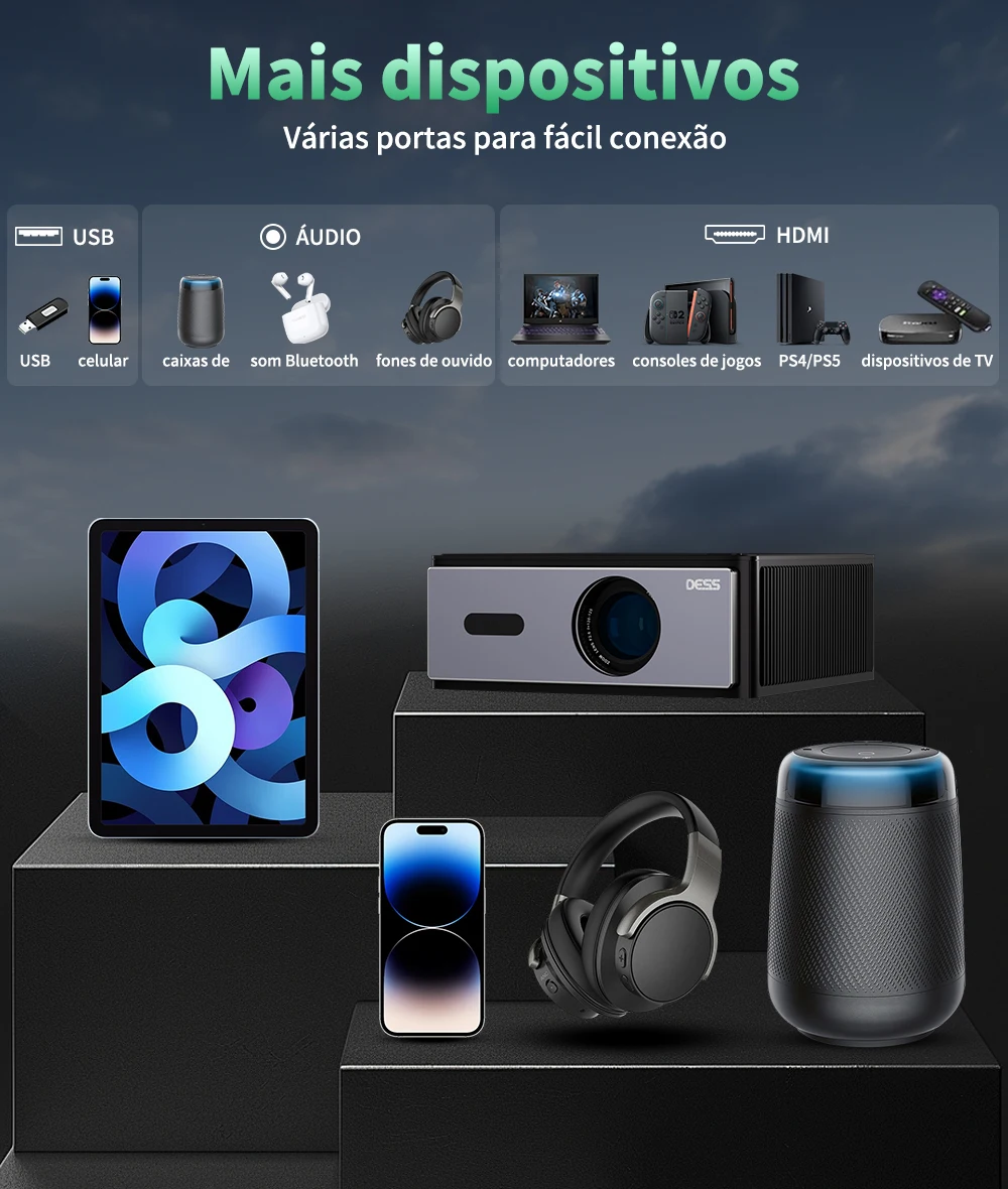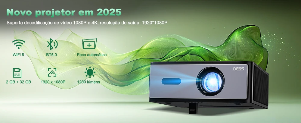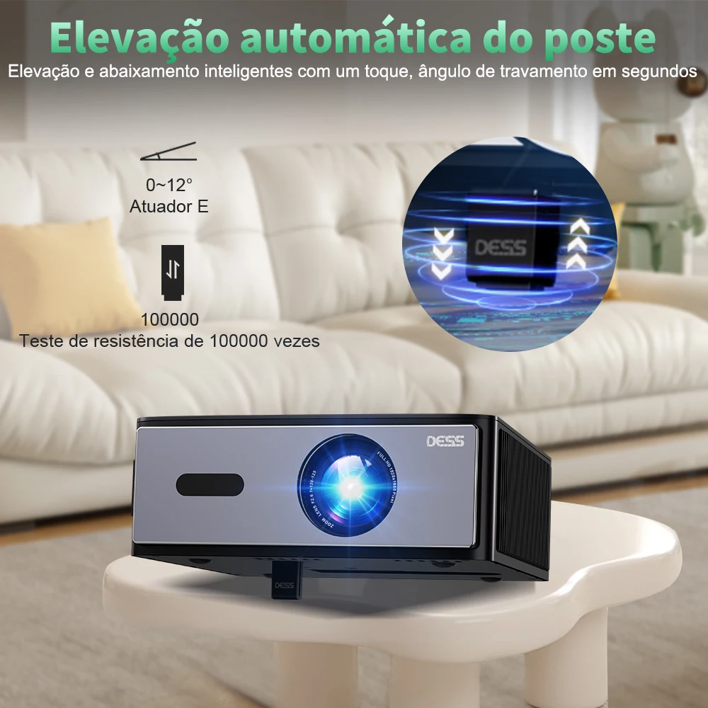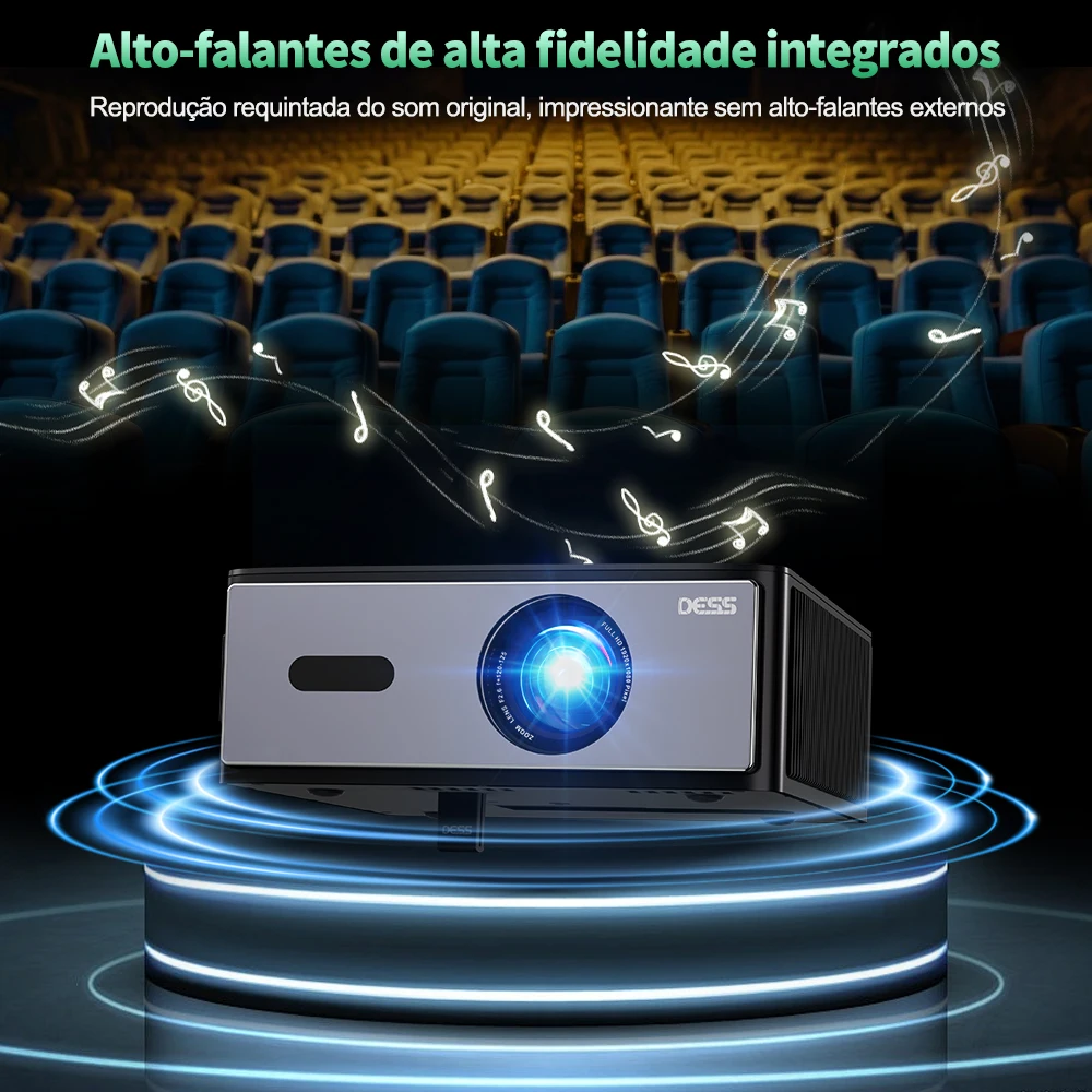 - > Projetor DESS Full HD 1080P Vídeo 4K Dual WiFi6 Autofoco Correção Keystone Espelhamento Android Projetor 3D Home Theater Cinema