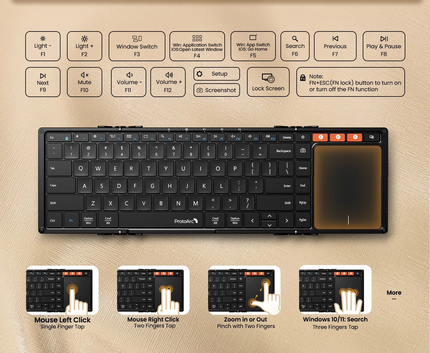 - > ProtoArc XK01 TP Teclado Dobrável com Touchpad Dobrável Bluetooth Teclados de Viagem para iPad iPhone Laptop PC Tablets