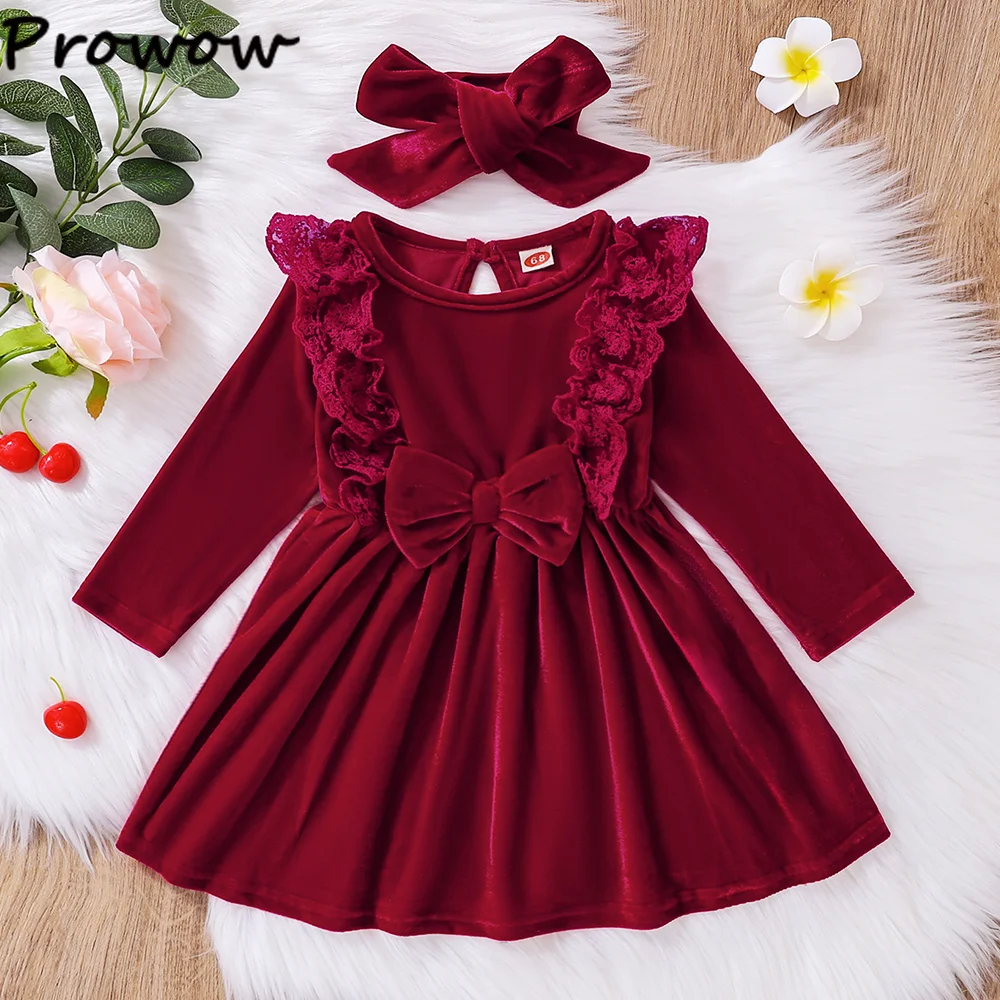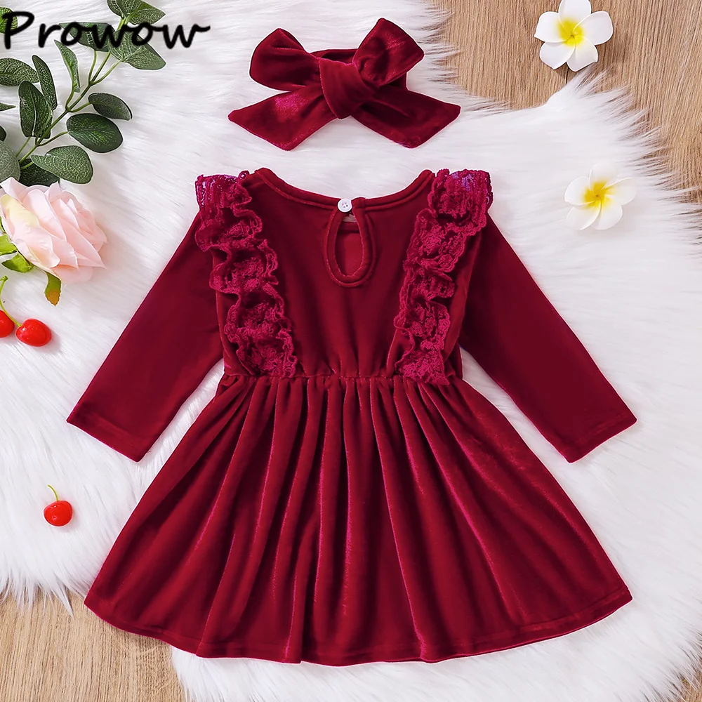 - > Prowow bebê vestidos de veludo ano novo manga longa retalhos rendas vestido vinho para recém-nascidos da criança meninas traje natal 2026