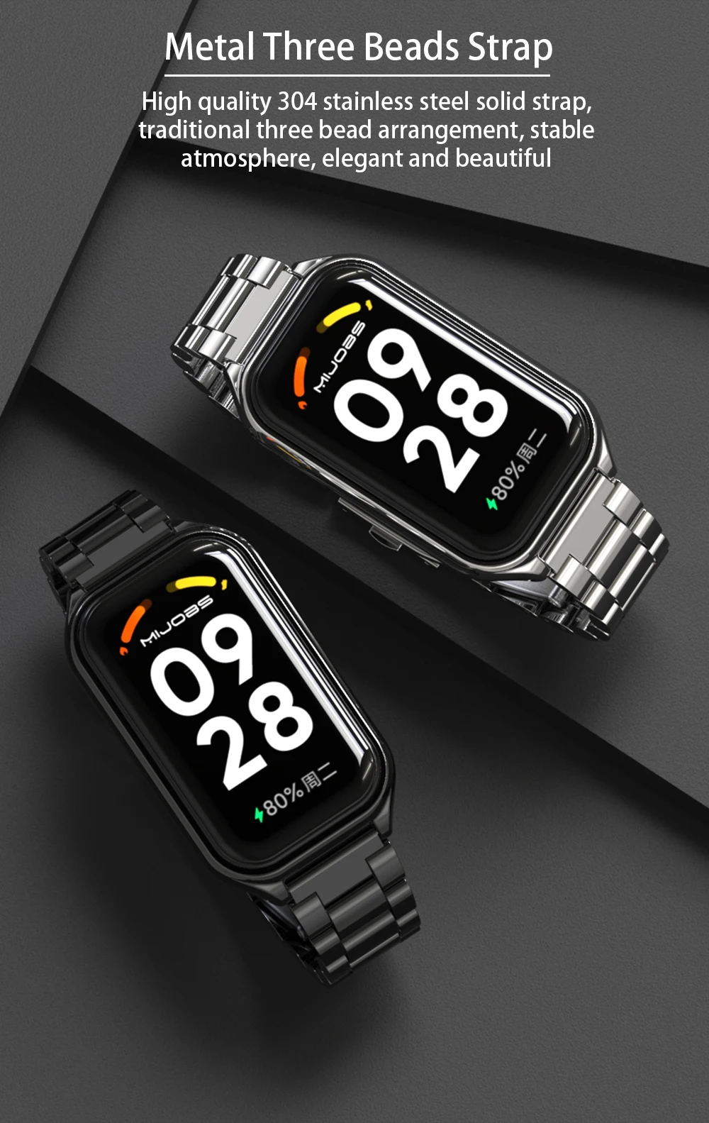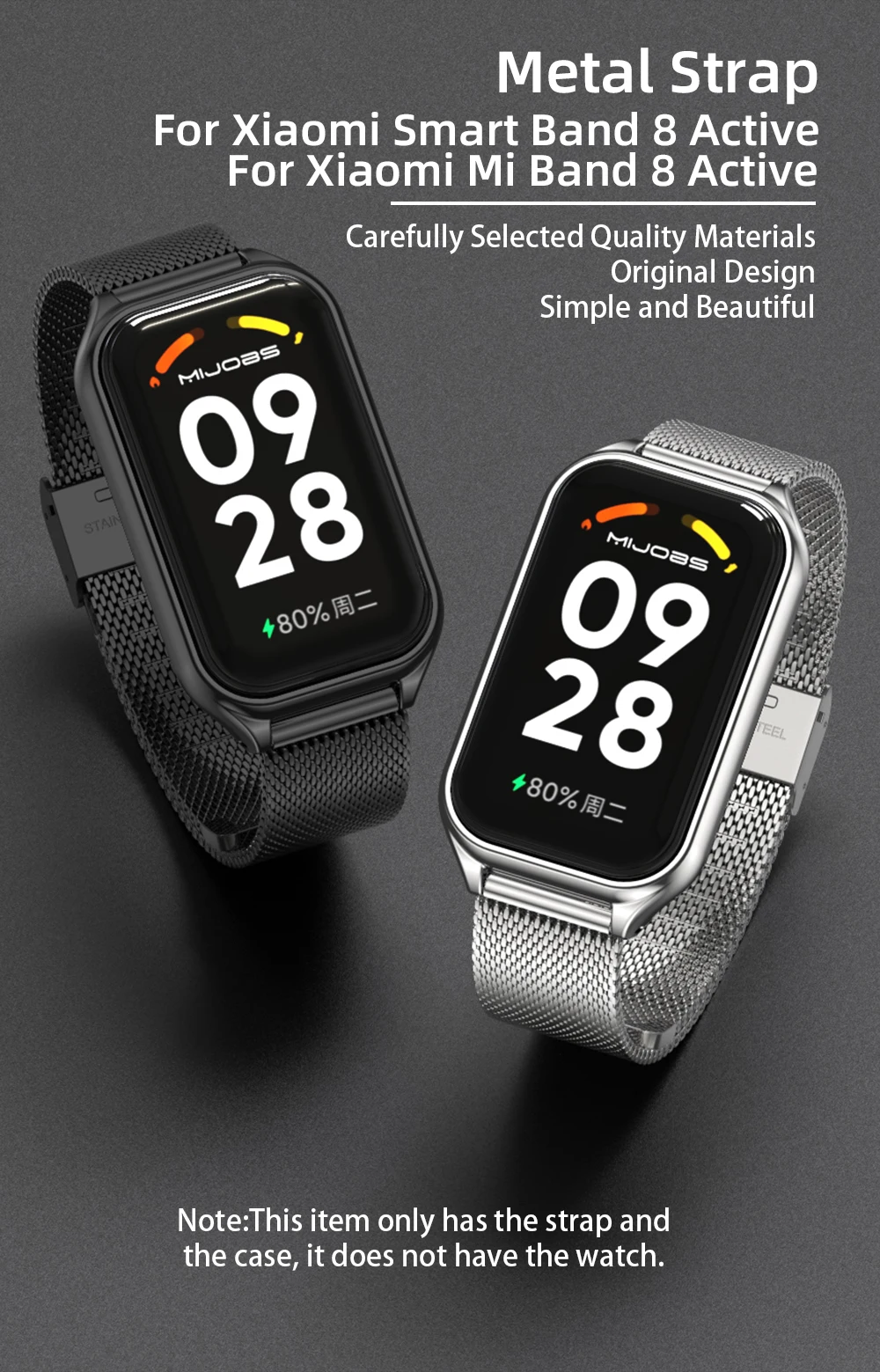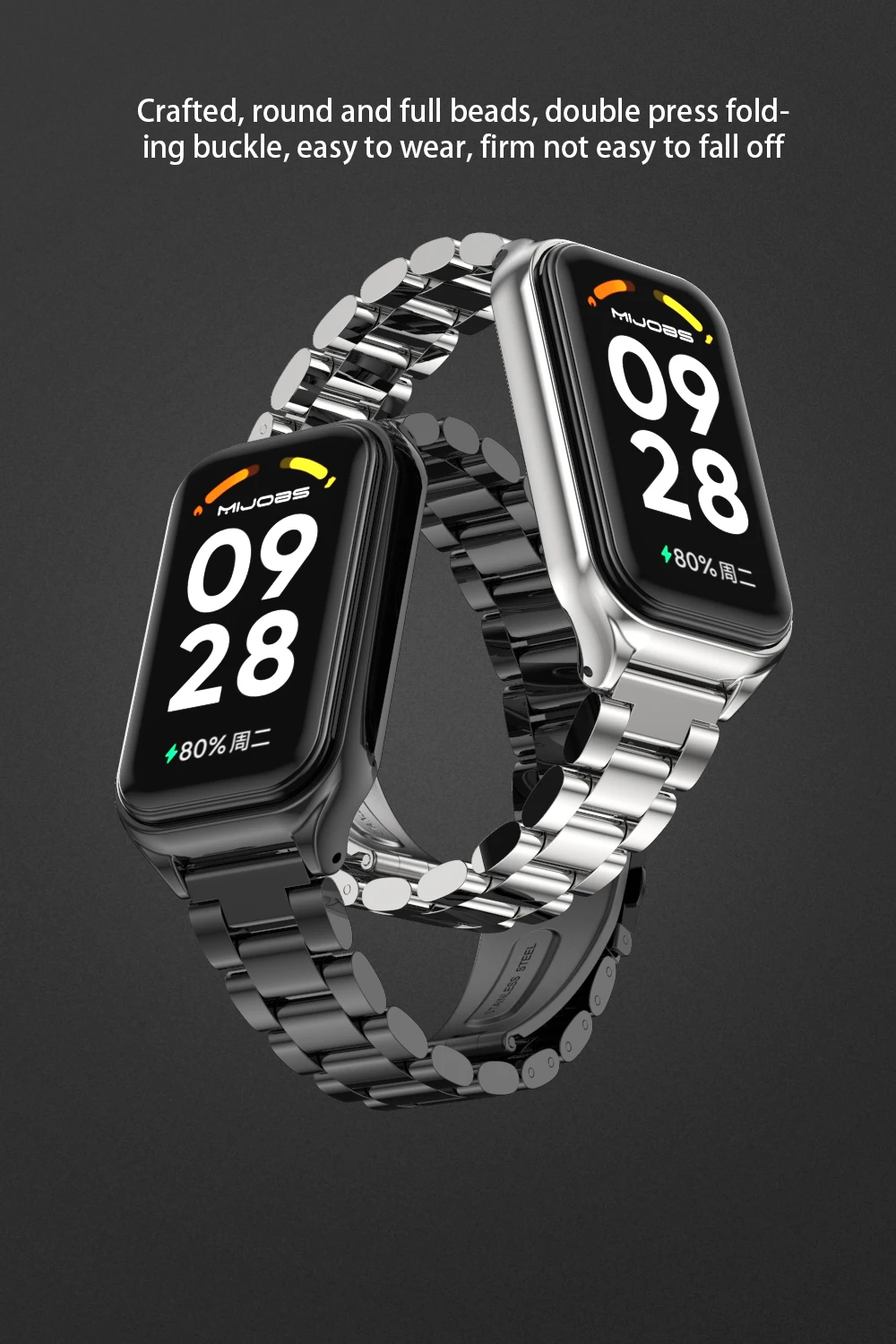 - > Pulseira de aço inoxidável, Correia para Xiaomi Mi Band 8 9 Pulseira Ativa, Relógio inteligente