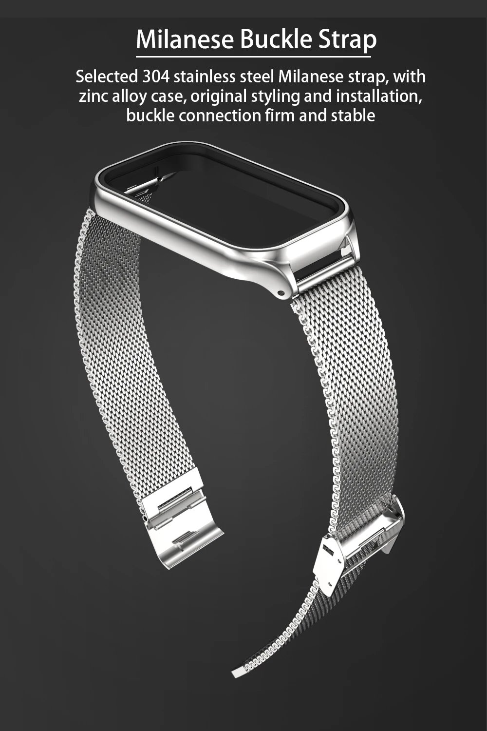 Pulseira para xiaomi mi band 8 pulseira ativa para xiaomi smart band 8 ativo pulseira de metal de aço inoxidável mi band 8 ativo