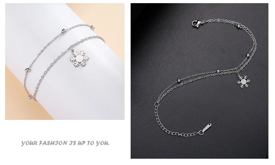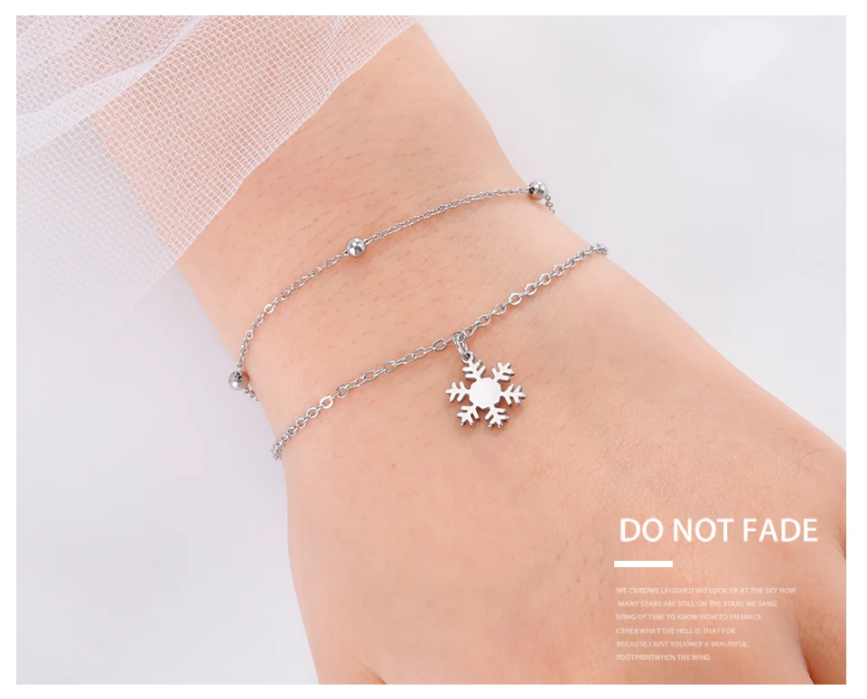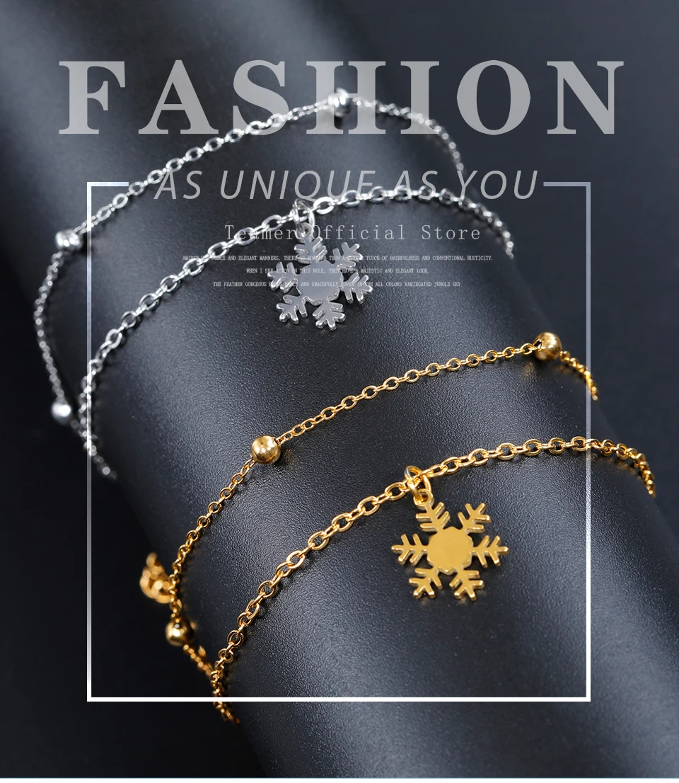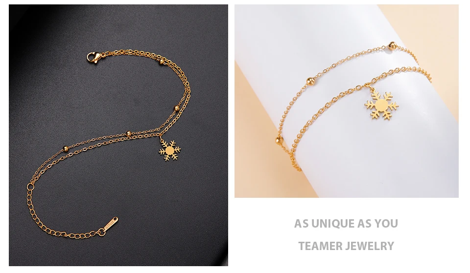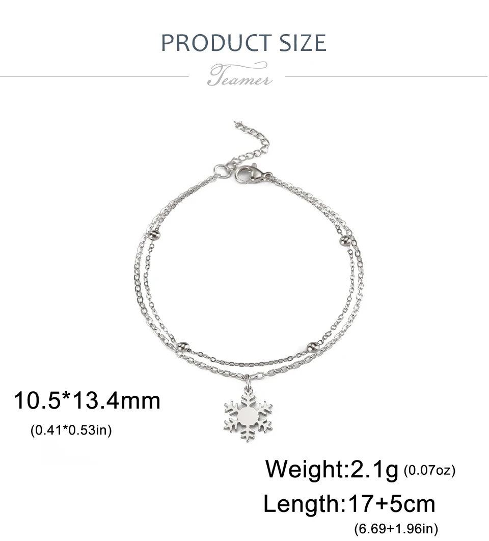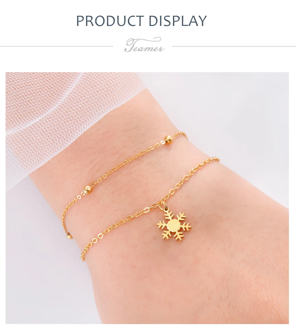 - > Pulseiras com pingente de floco de neve para o Dia dos Namorados da Teamer para mulheres, joias de aço inoxidável com corrente de contas de camada dupla, presente de moda 2026