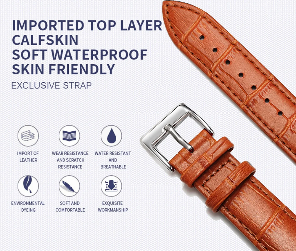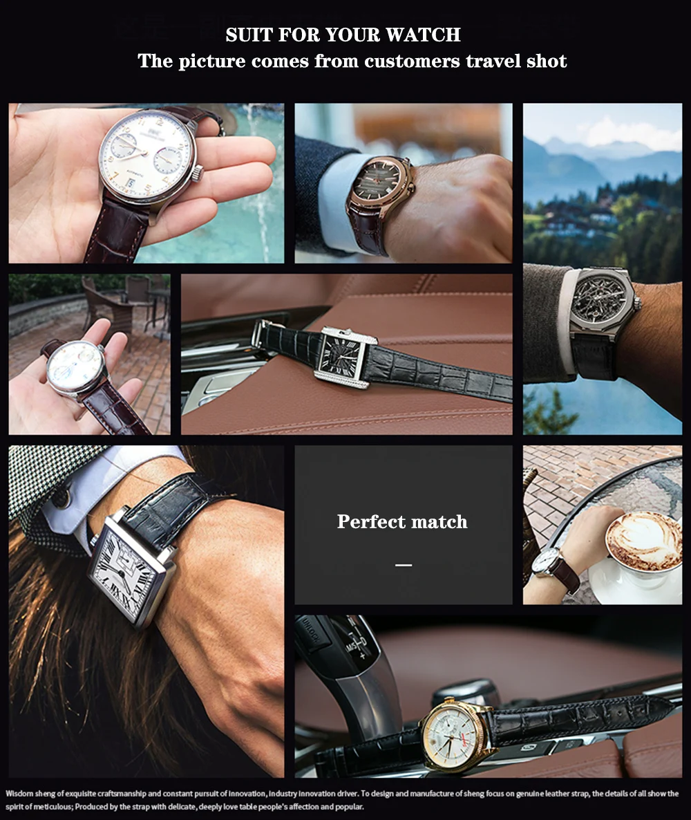 Pulseira de relógio 100% couro genuíno.Nunca venda produtos de couro falso.