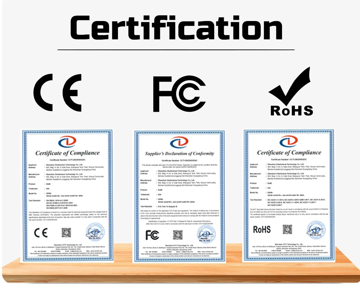• Garantia de 1 ano contra defeitos de fabricação diretamente de nós e garantia vitalícia diretamente do fabricante.