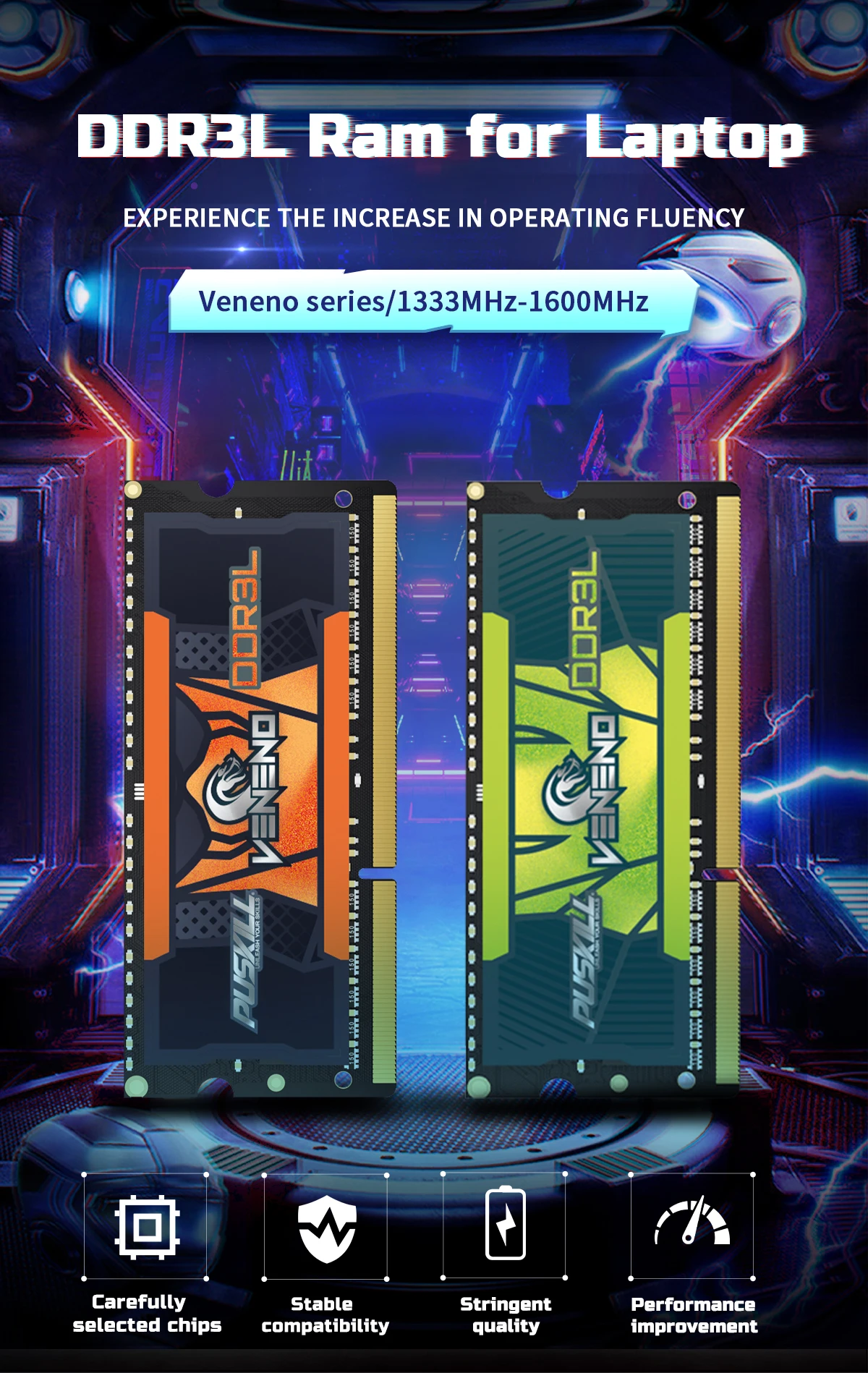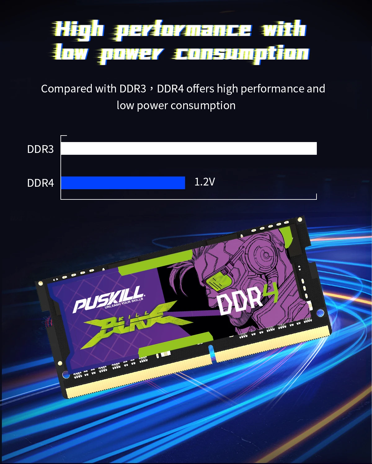 - > PUSKILL DDR4 Notebook Ram DDR3L 32GB 16GB 8GB 4GB 1.2V 3200MHz 2666MHz 2400MHz 1.35V 1600MHz 1333MHz Sodimm Memória para laptop
