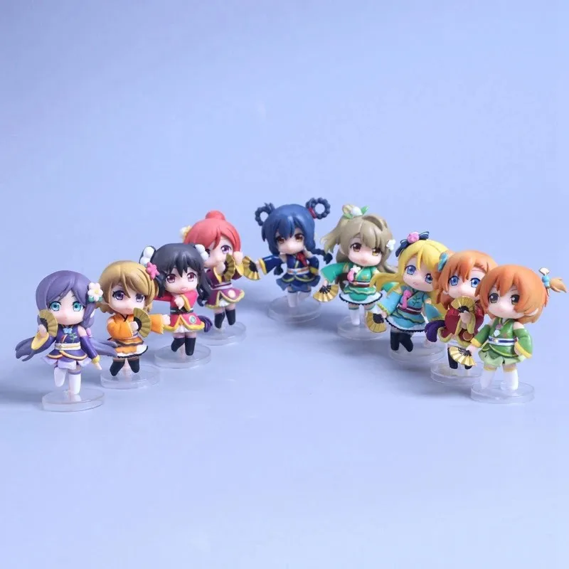 - > Q Versão Anime Figure, Love Live!, 9pcs por Set PVC Kimono Standing Figure Toy, Projeto Idol Escola, Minami, Honoka Kousaka, bonito