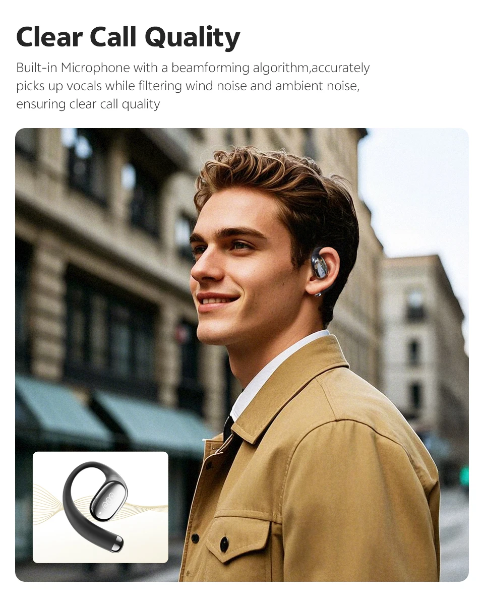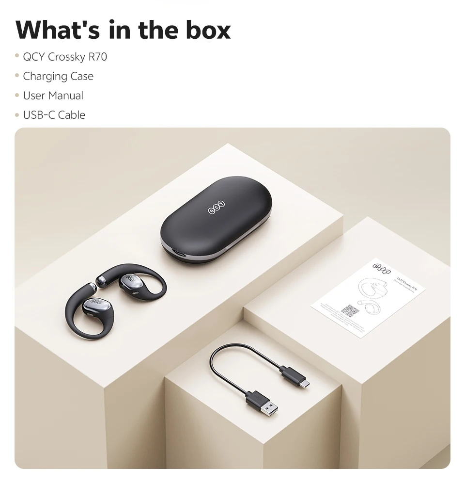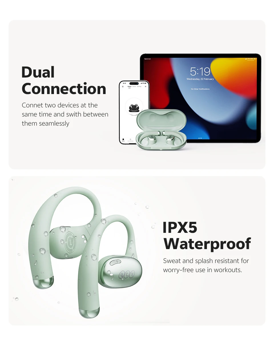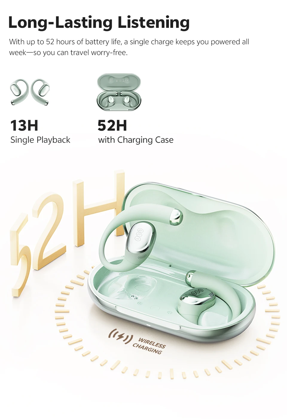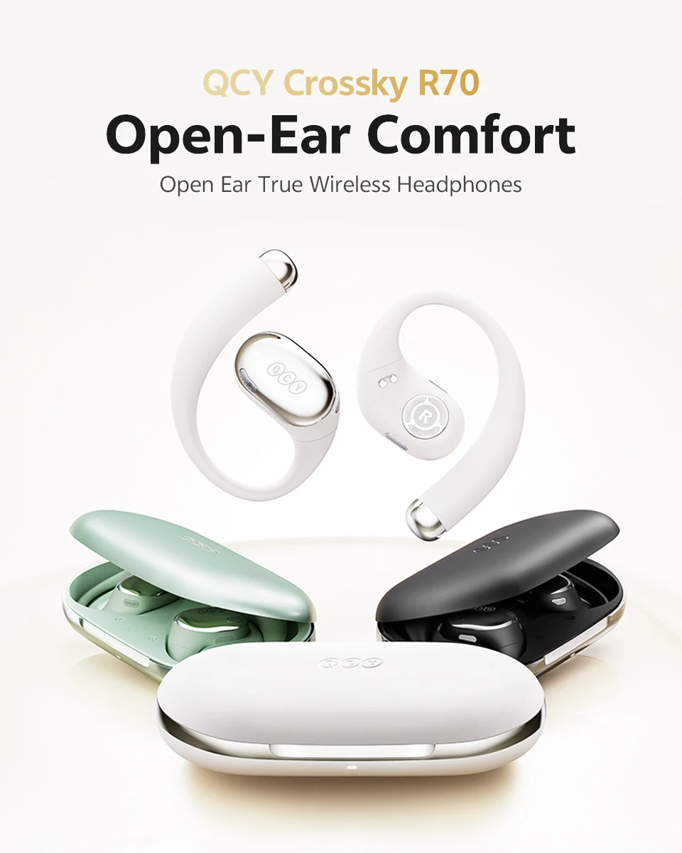 Fones de Ouvido Sem Fio Abertos QCY Crossky R70 Hi-Res com LDAC OWS, Reforço de Graves, Bluetooth 6.0, Gancho de Orelha, Fones Esportivos, 52 Horas de Autonomia