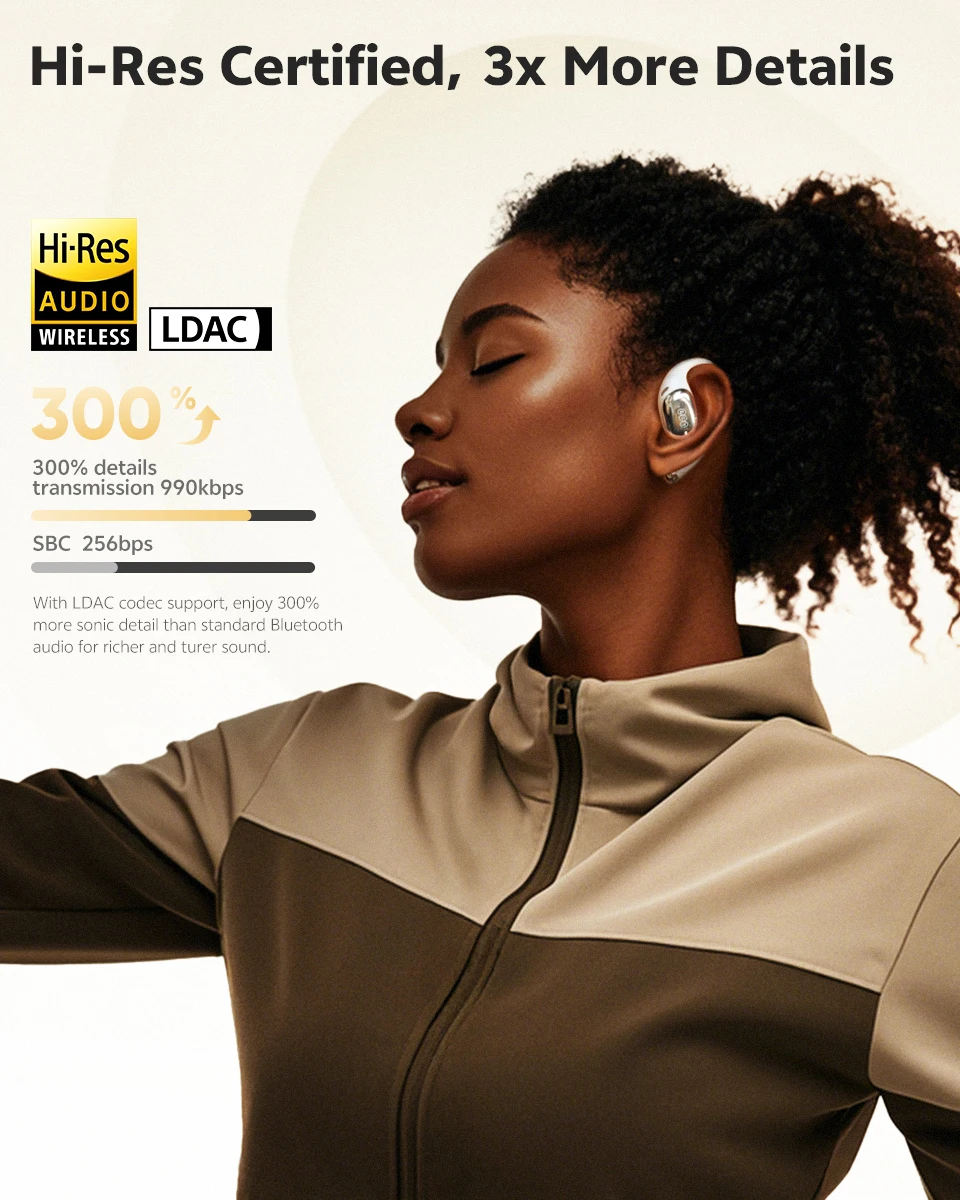 Com suporte ao codec LDAC, desfrute de 300% mais detalhes sonoros do que o áudio Bluetooth padrão para um som mais rico e rico.(Dispositivos iOS não suportam LDAC.)