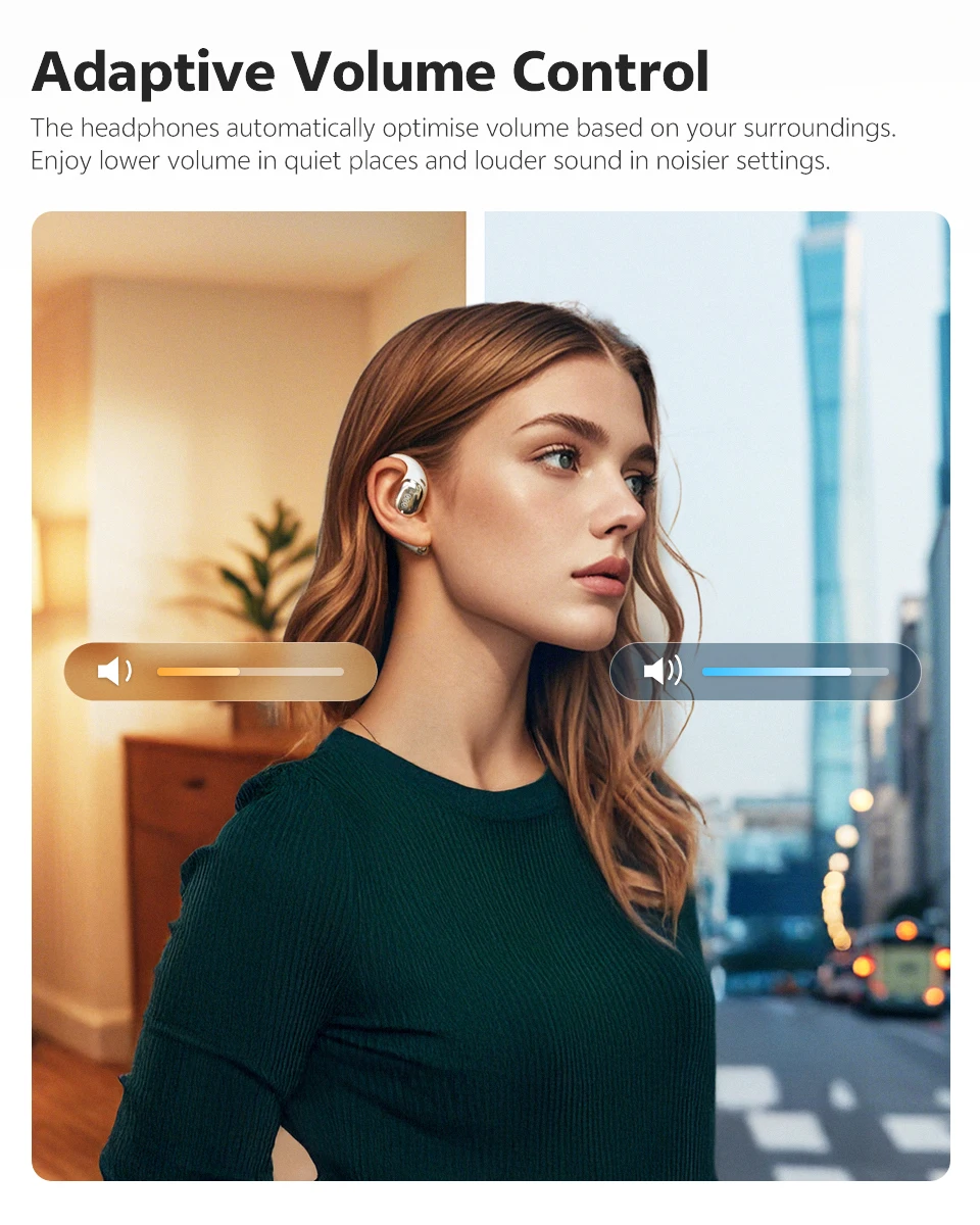 Os fones de ouvido otimizam automaticamente o volume com base no ambiente.Desfrute de um volume mais baixo em locais silenciosos e de um som mais alto em ambientes mais barulhentos.