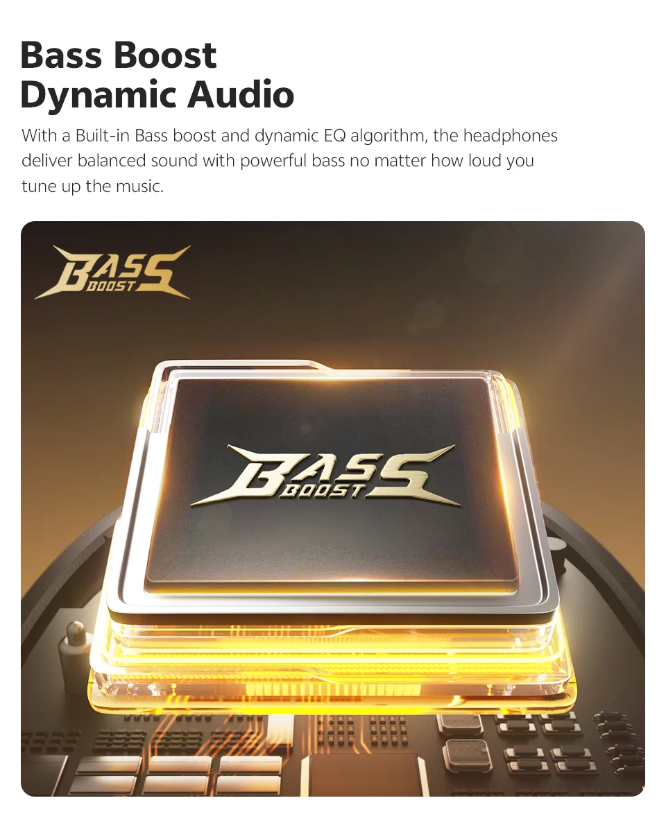 Com um reforço de graves integrado e um algoritmo de equalização dinâmica, os fones de ouvido oferecem um som equilibrado com graves potentes, não importa o volume da música.