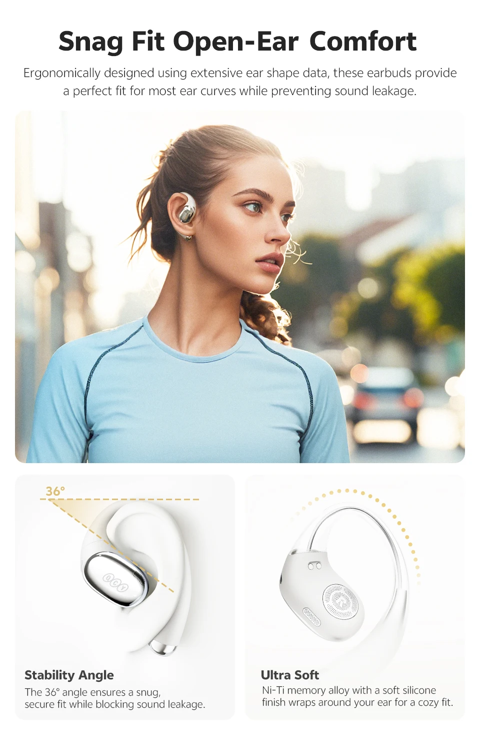 - Design esportivo de gancho de ouvido Airfit, ajuste seguro e conforto macio