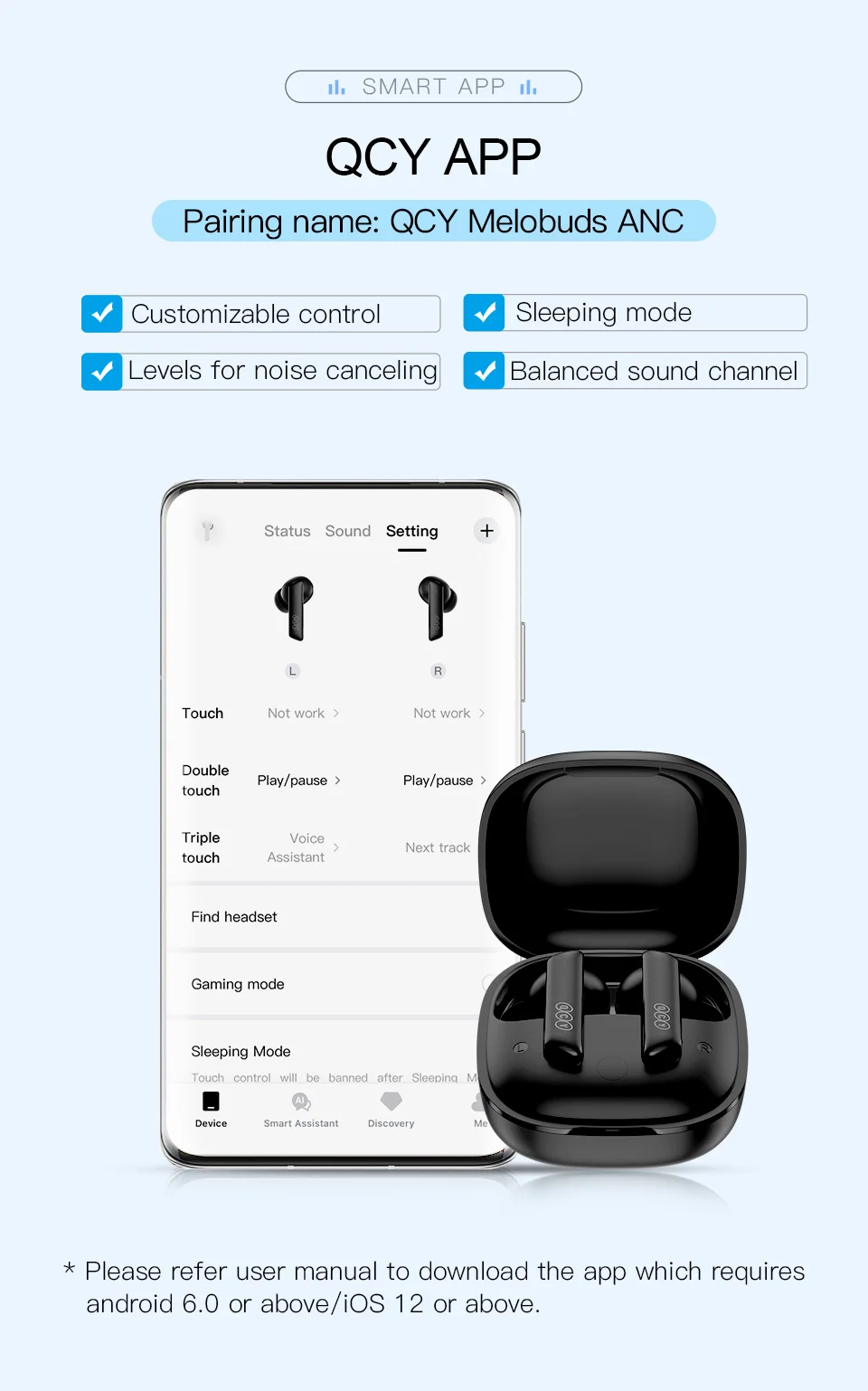 [Suporte para APP QCY, controle de toque, assistente de voz, modo de suspensão, modo de jogo]