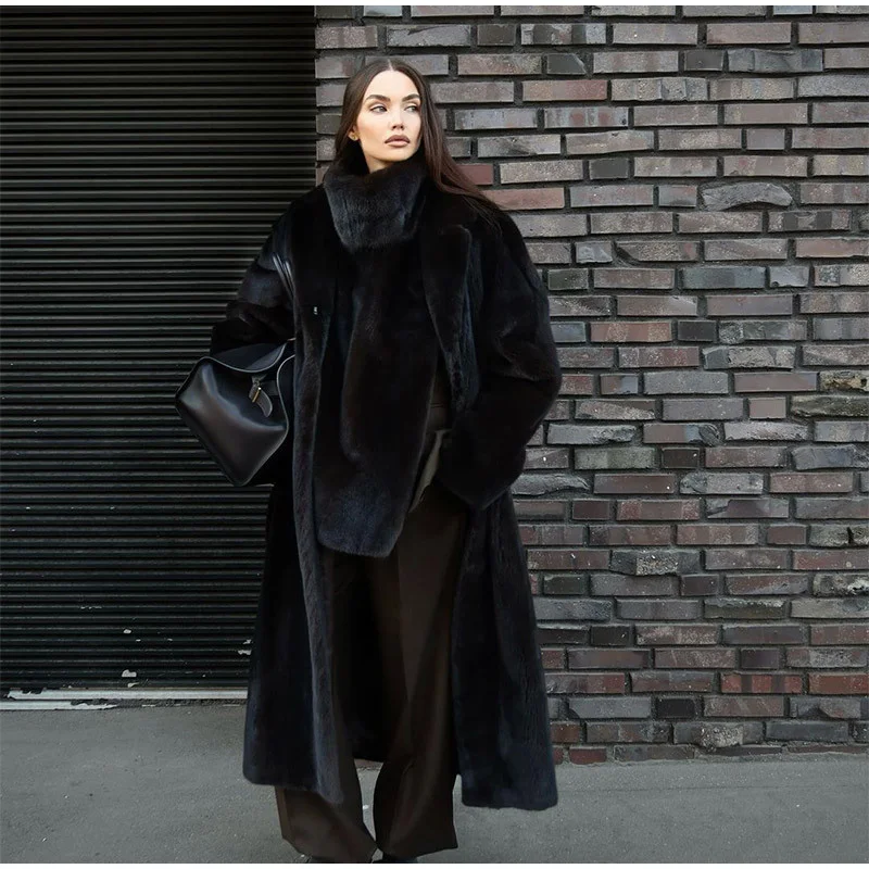 - > Quente pele do falso emendado casacos de algodão feminino solto lapela manga longa bolsos engrossar jaqueta feminina 2025 inverno senhora chique outwear novo
