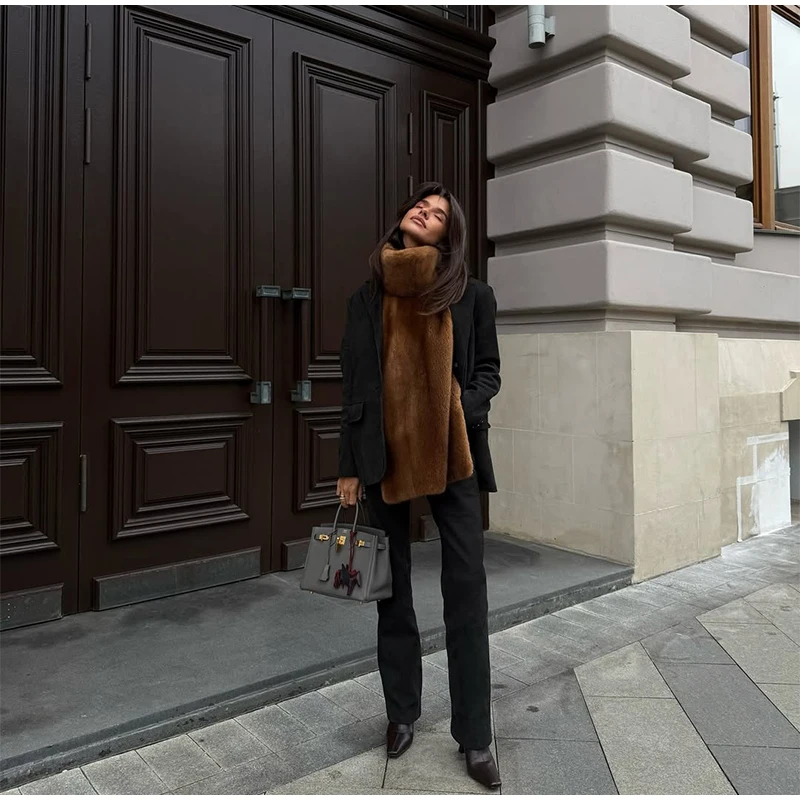 Quente pele do falso emendado casacos de algodão feminino solto lapela manga longa bolsos engrossar jaqueta feminina 2025 inverno senhora chique outwear novo