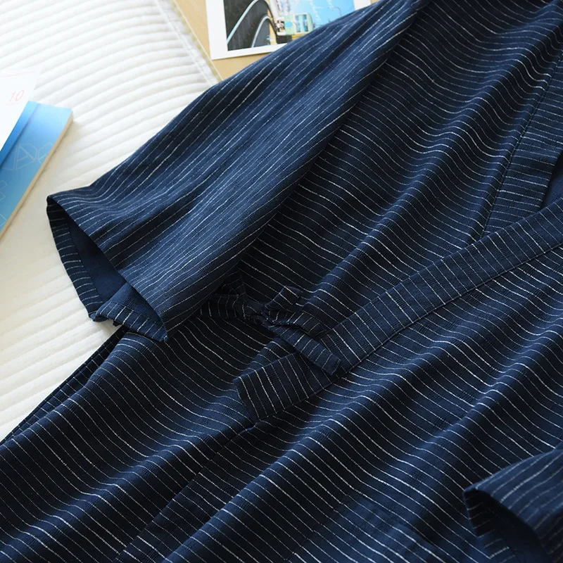 - > Quimono japonês de duas peças masculino primavera e verão novo roupão 100% algodão pijamas longos de duas peças conjunto de serviço de casa conjuntos de robe