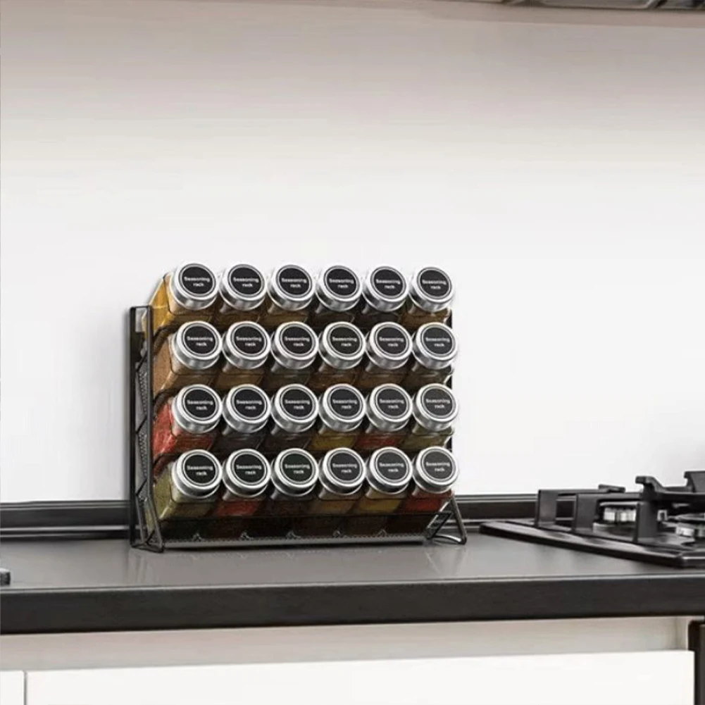 Rack de jarra de especiarias de 4 camadas, suporte de recipiente montado na parede, organizador de tempero de especiarias de aço carbono para armazenamento de pequenas latas