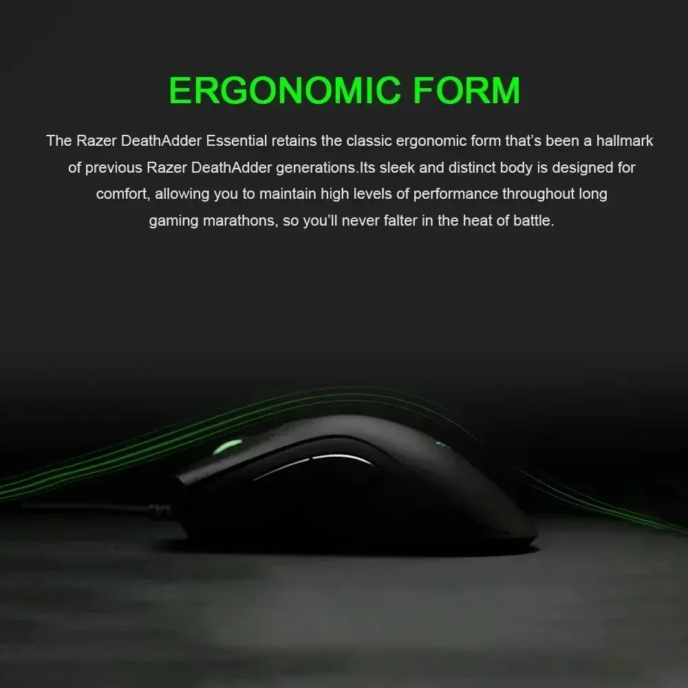 - > Razer DeathAdder Essential Mouse para jogos com fio original, sensor óptico de 6400DPI, 5 botões independentes para laptop, pc gamer