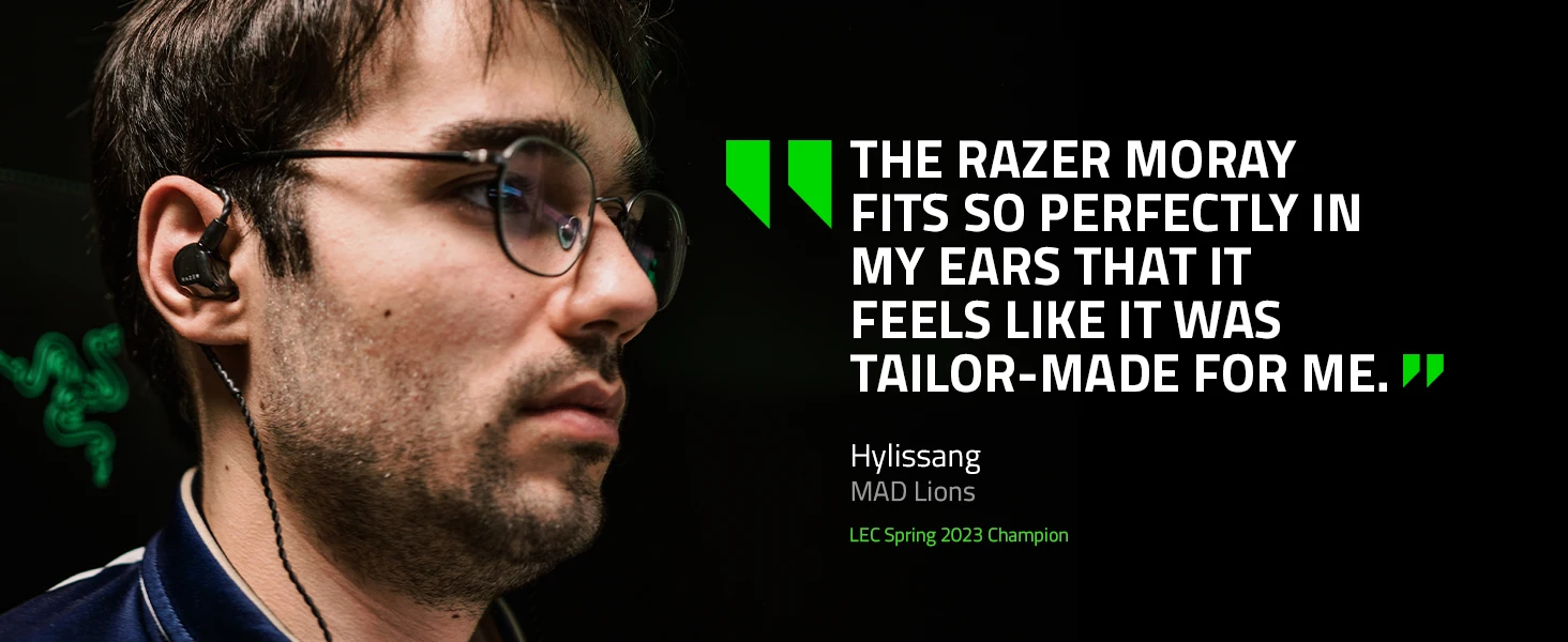- > Razer Moray Monitor intra-auricular ergonômico para streaming durante todo o dia Projeto acústico híbrido de driver duplo Isolamento de ruído passivo superior