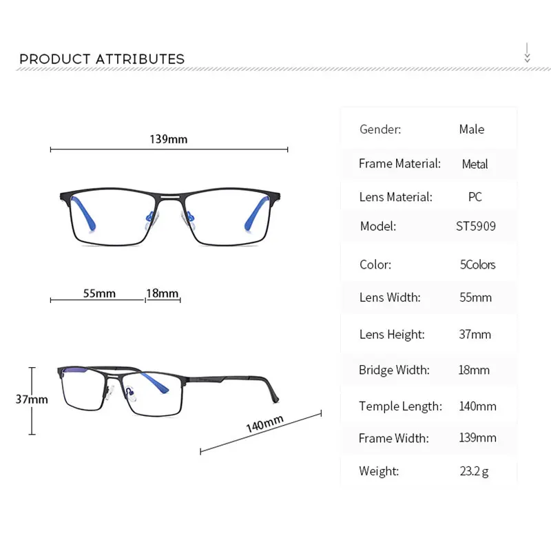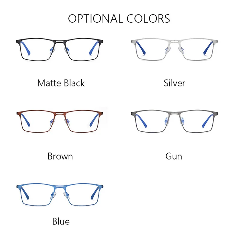 - > Rbenn 2022 novos homens luz azul bloqueando óculos de leitura armação de metal prescrição óculos anti raios azuis leitor de computador + 1.75