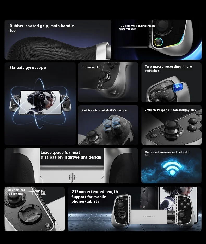 - > Red Magic Shadow Blade 3 Controlador de jogos móvel Gamepads sem fio adequados para Red Magic Esports Tablets para PC Android iOS