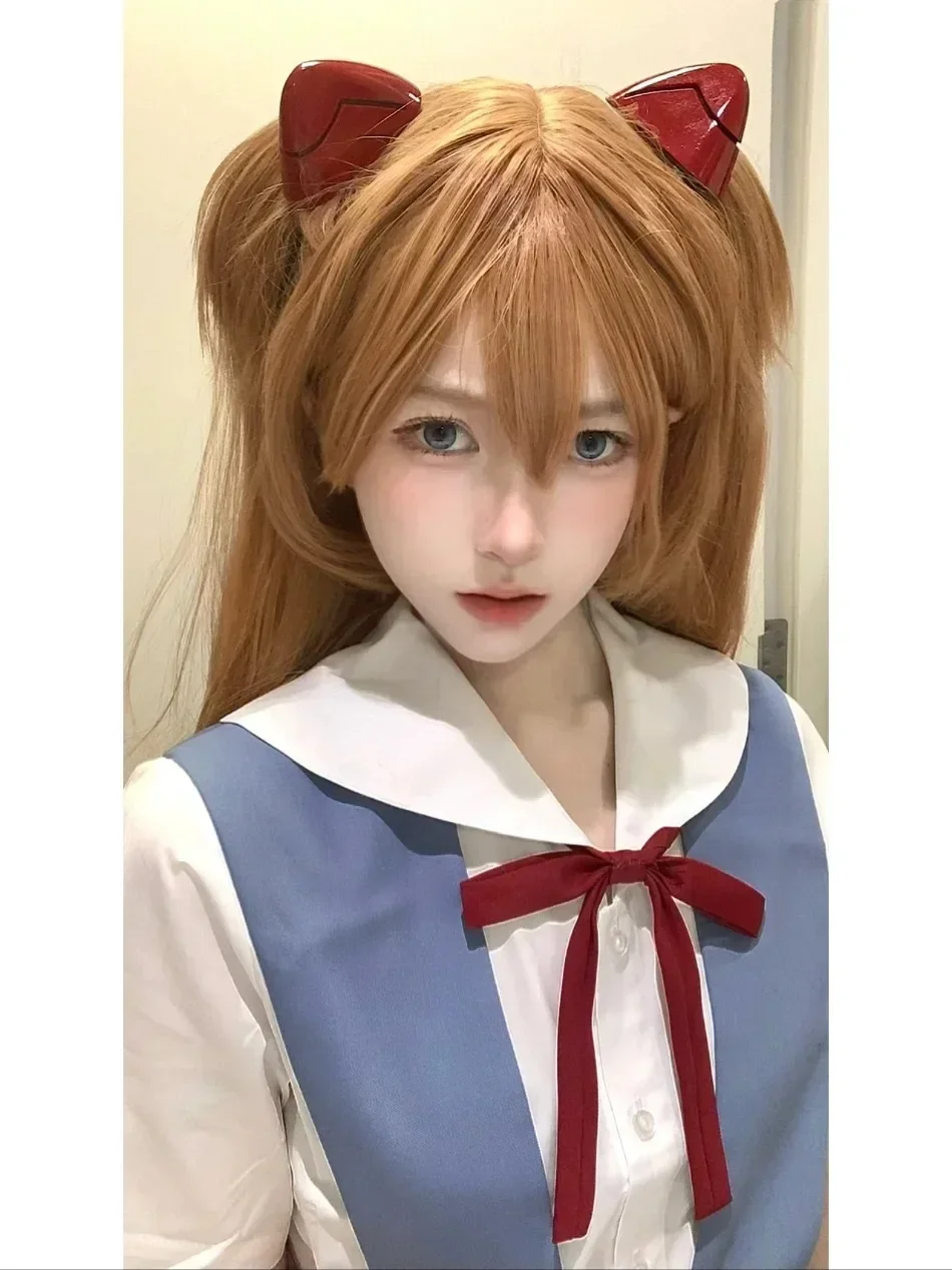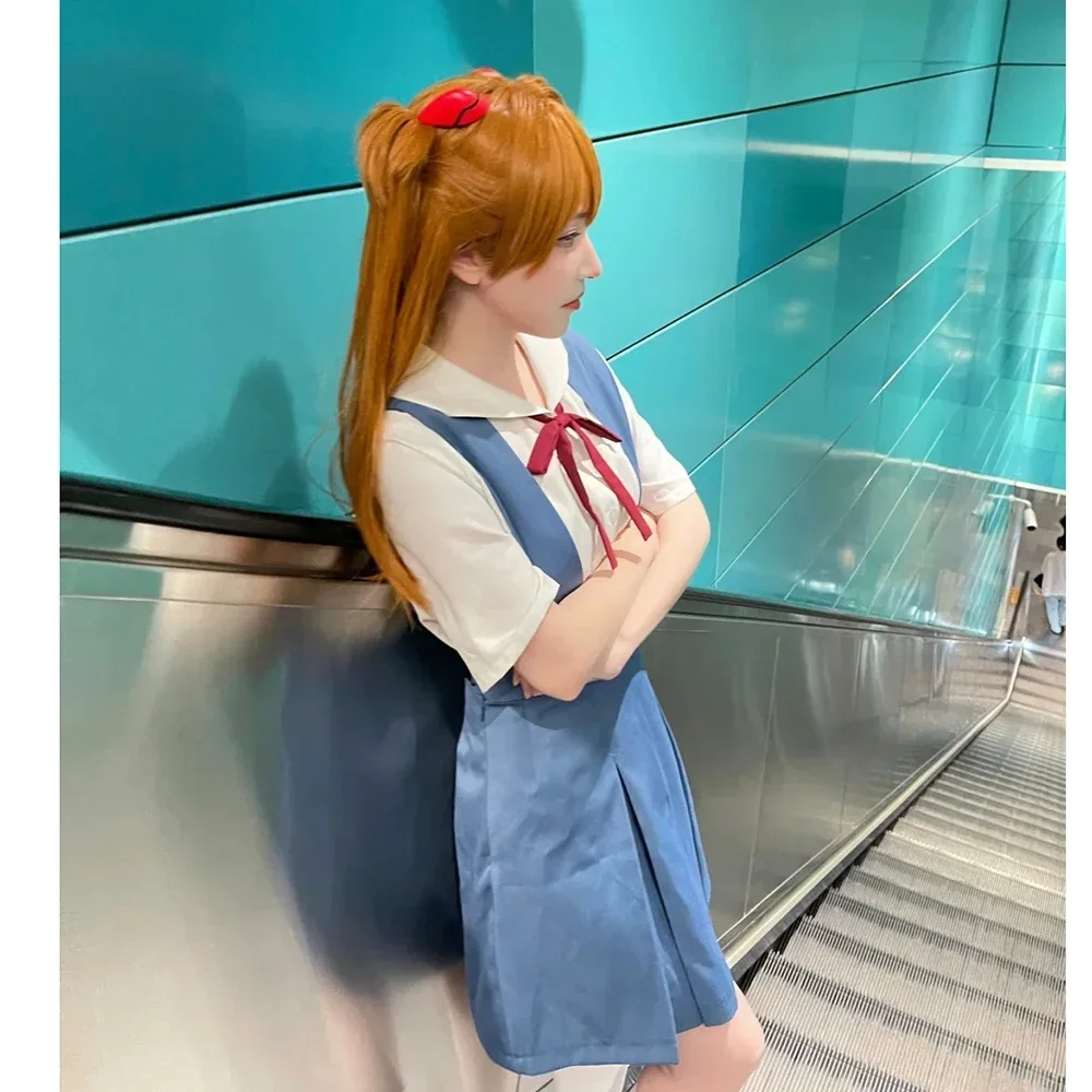 Rei ayanami cosplay traje asuka langley soryu cosplay feminino uniforme escolar vestidos peruca grampos de cabelo halloween loli roupas