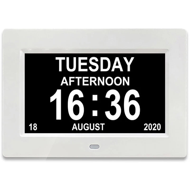 Relógio de calendário LED,12 conjuntos de despertadores podem ser ajustados. Adequado para idosos, estudantes e escritórios. Existem quatro modos de exibição para escolher. Configurações convenientes de controle remoto