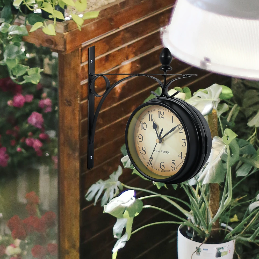 Dupla face: Este relógio de aparência antiga é dupla face para que ambos os lados fiquem visíveis, enquanto um suporte ornamentado o torna ideal para montagem ao ar livre.Perfeito para pátios, casas de verão e paredes de jardins, com certeza será uma adição maravilhosa ao seu ambiente.