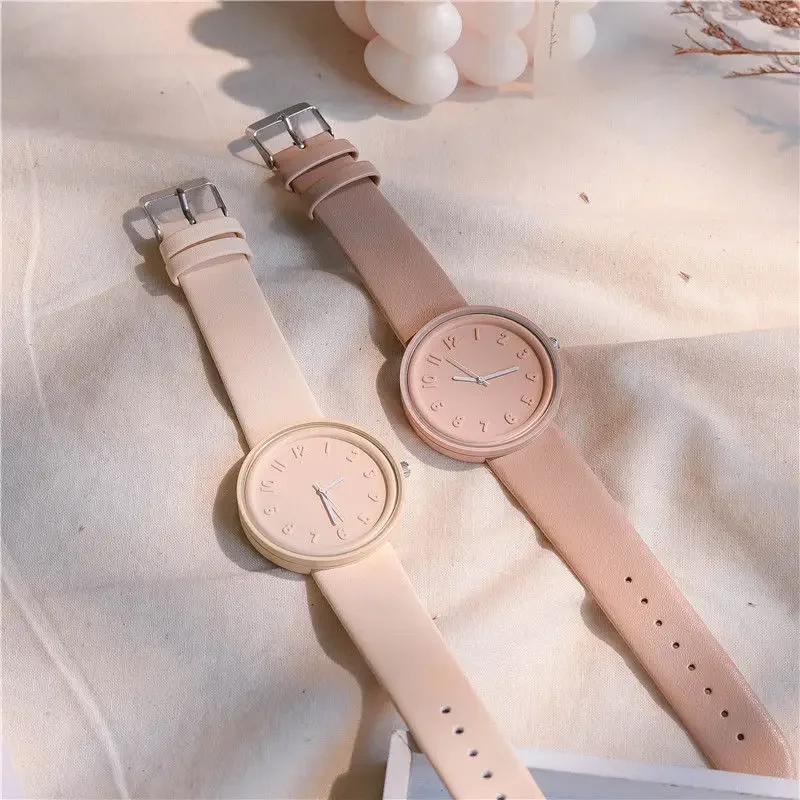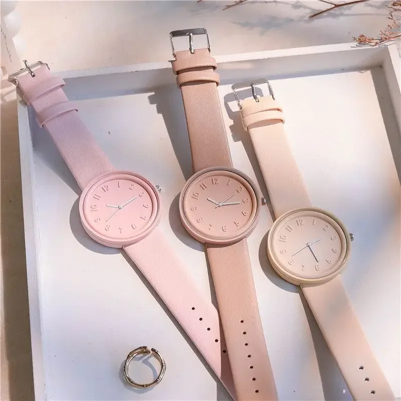- > Relógio de quartzo simples masculino e feminino, relógio de pulso vintage redondo, estilo lazer, moda estudantil, estilo Ins