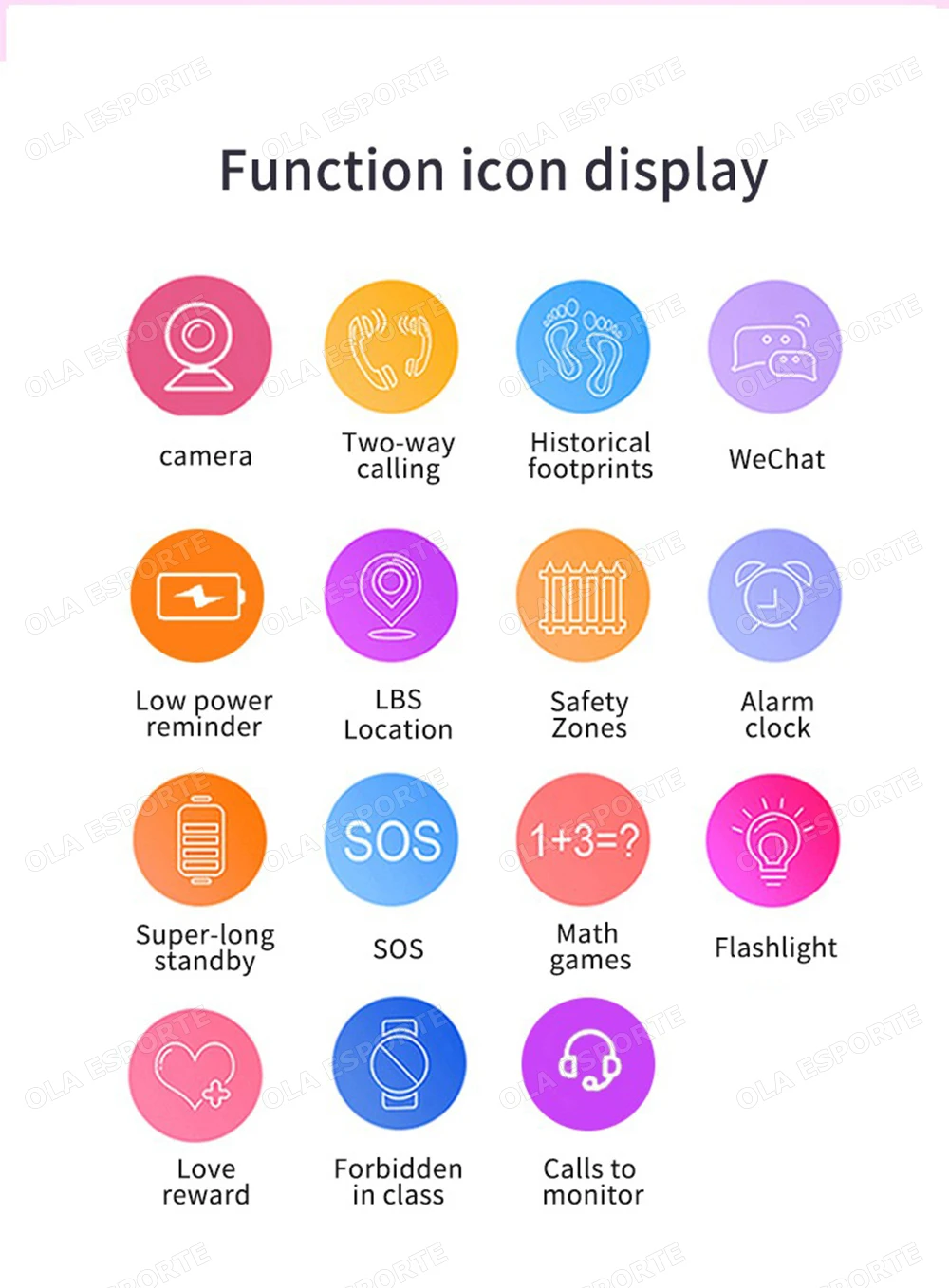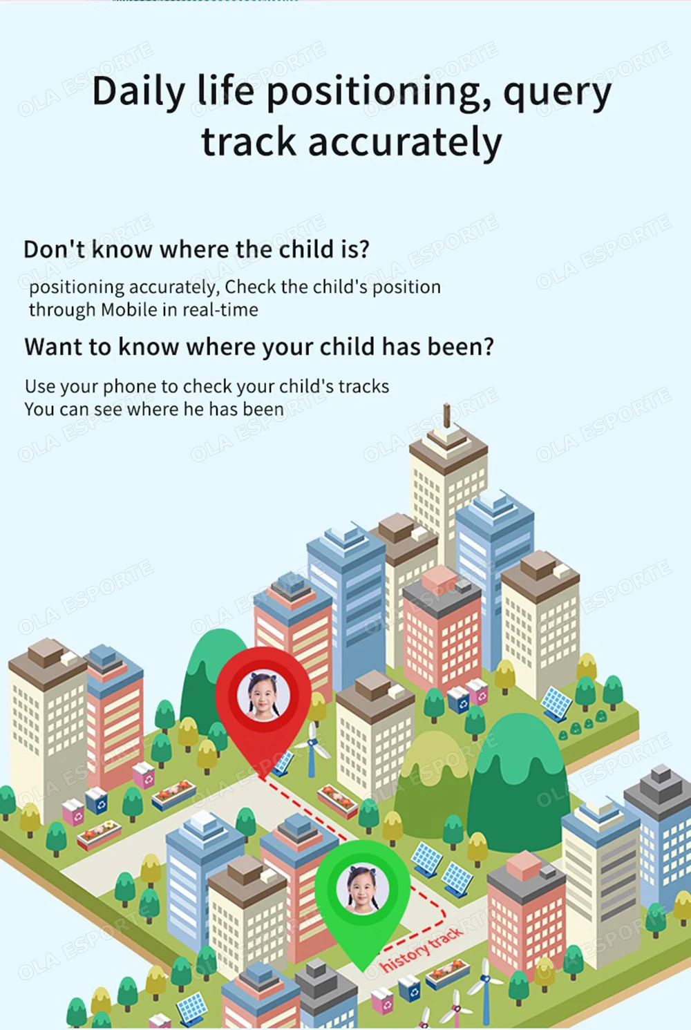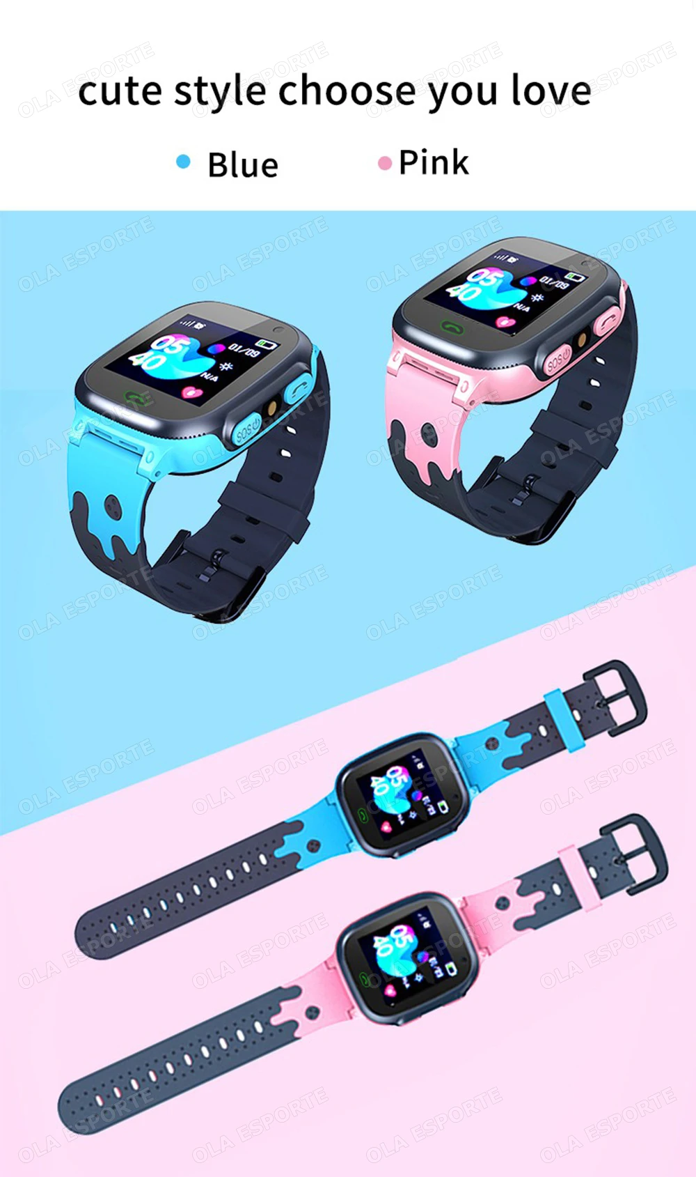 1.Chamada de emergência LBS e SOS: Nosso relógio inteligente infantil tem muitas funções, botão SOS com um clique e LBS, essas funções são desenvolvidas para a segurança das crianças.Os pais podem controlar e configurar através do aplicativo “Setracker 2” para garantir sua segurança.