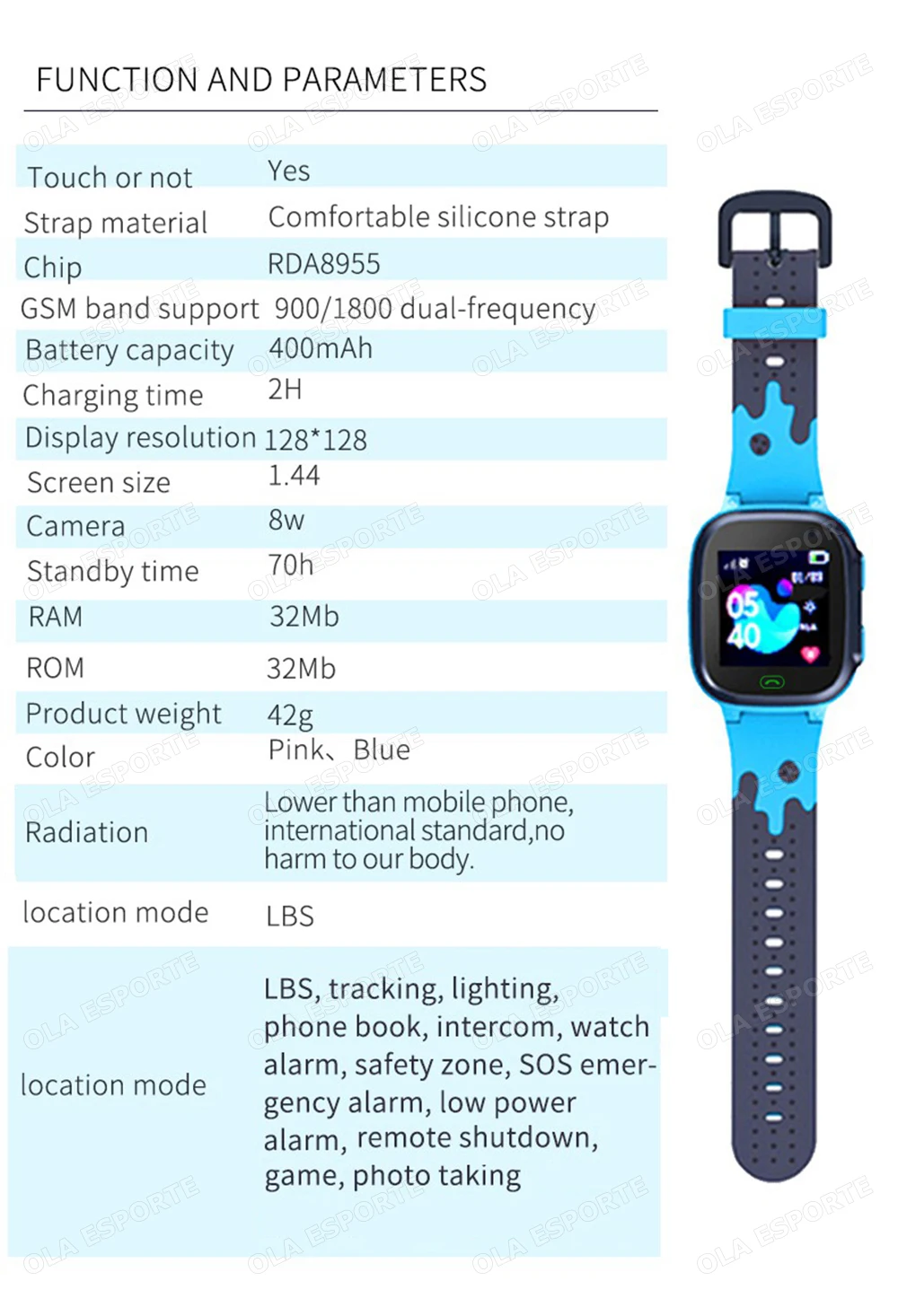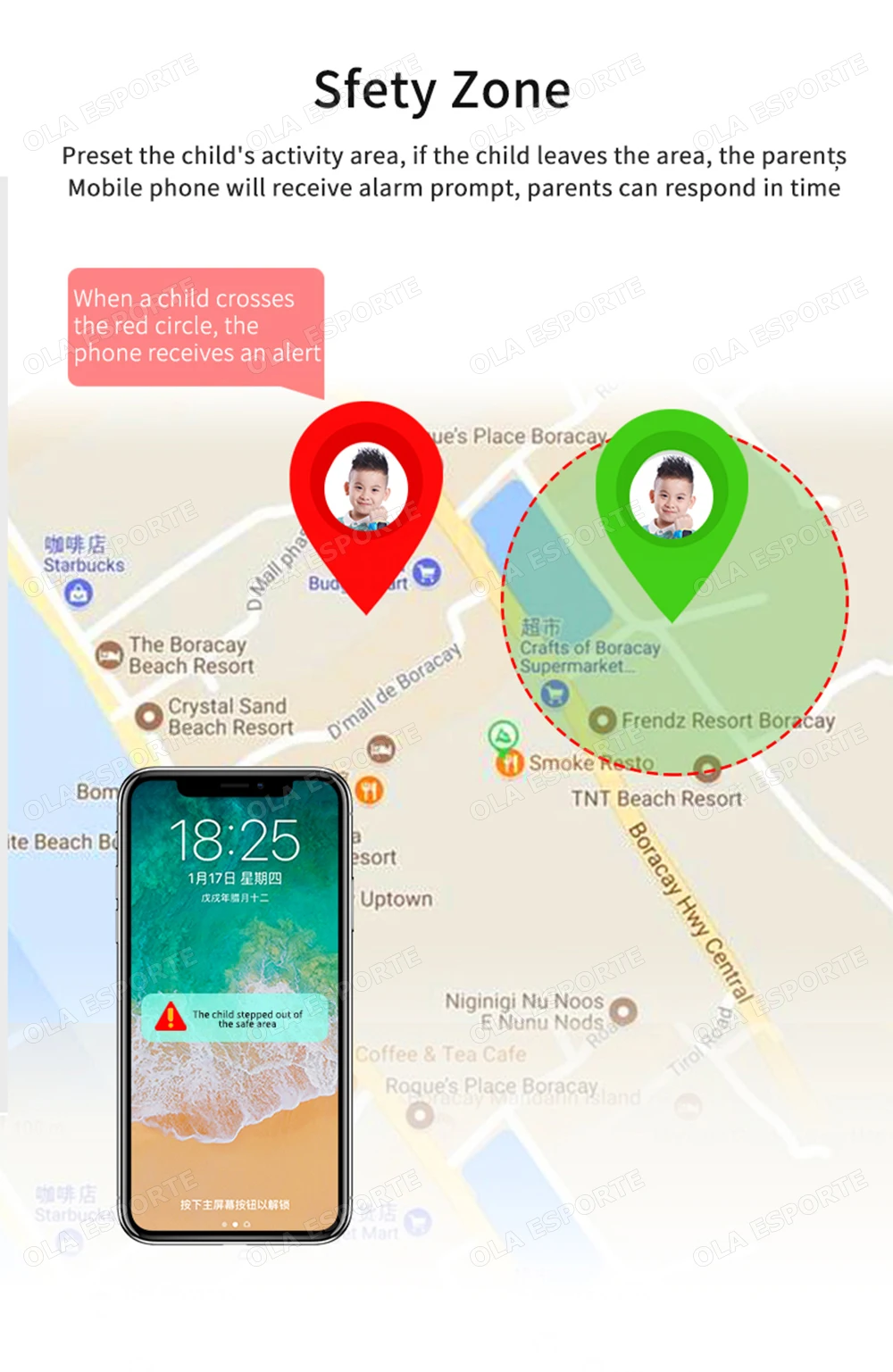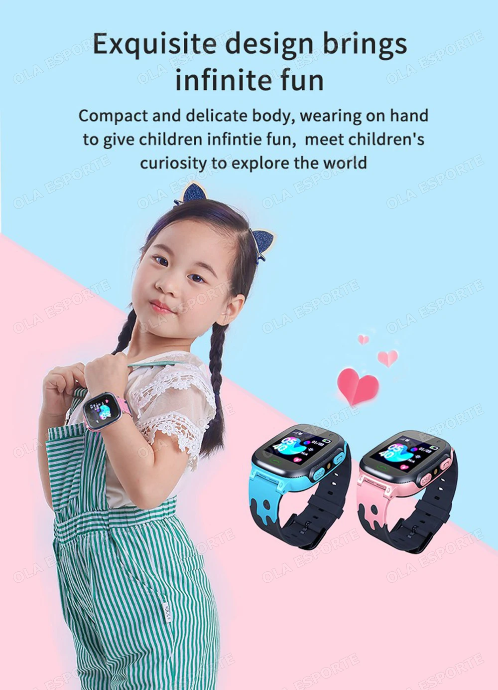 1.Chamada de emergência LBS e SOS: Nosso relógio inteligente infantil tem muitas funções, botão SOS com um clique e LBS, essas funções são desenvolvidas para a segurança das crianças.Os pais podem controlar e configurar através do aplicativo “Setracker 2” para garantir sua segurança.