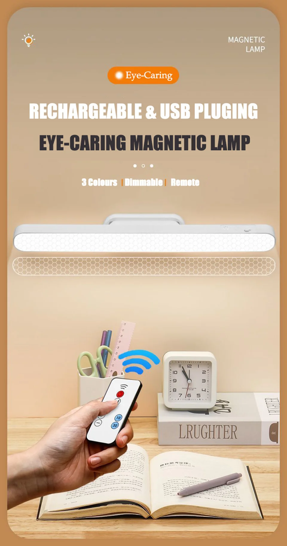 - > Remoto led lâmpada de mesa magnética pendurado luz da noite usb recarregável lâmpada mesa 3 cores luz leitura para armário guarda-roupa