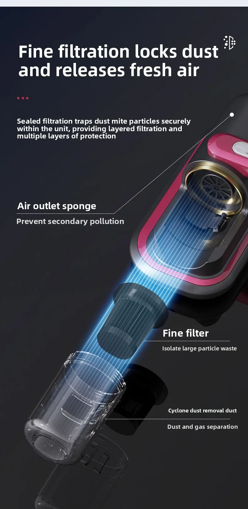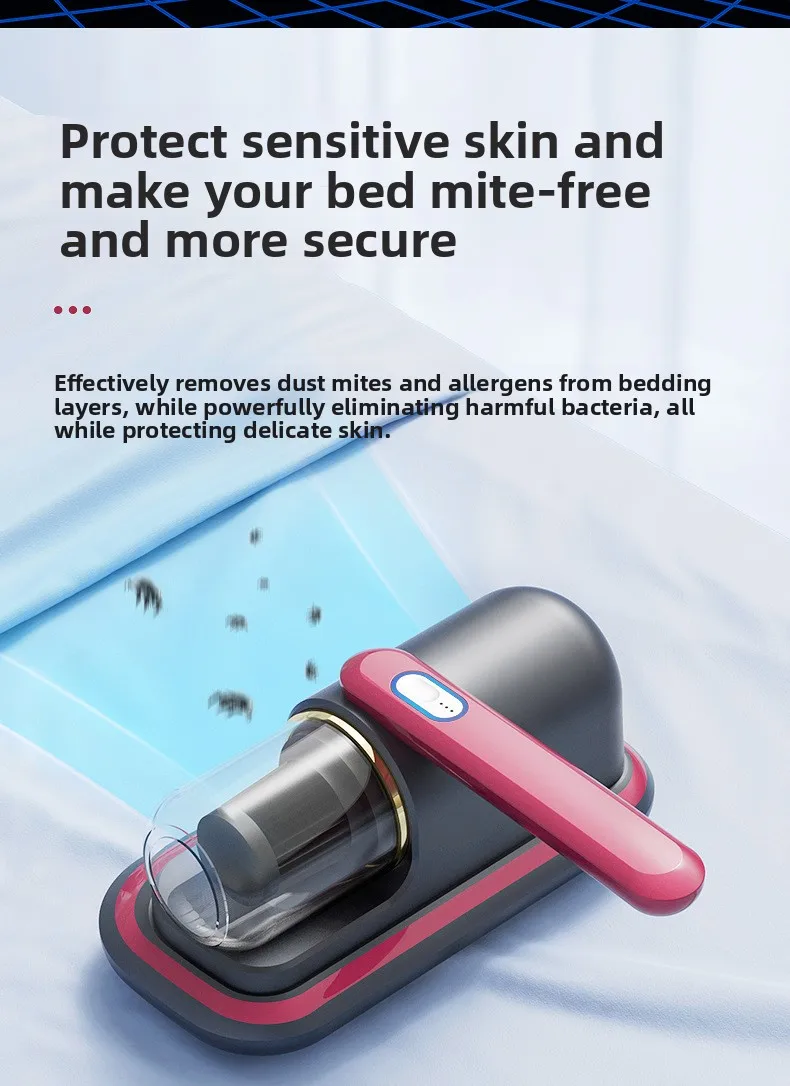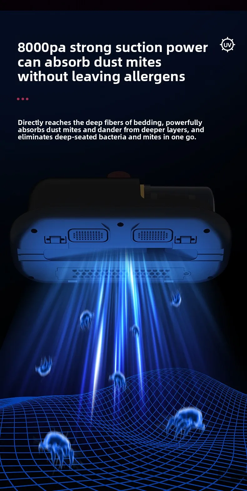 Removedor de Ácaros Doméstico para Cama, Grande Sucção, Esterilizador Ultravioleta, Aspirador Sem Fio, Removedor de Ácaros para Sofá