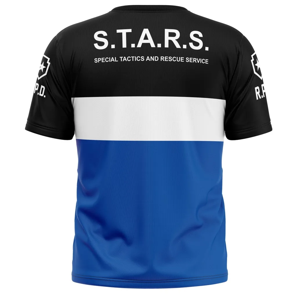 - > Resident Evil S.T.A.R.S. Camiseta impressa em 3D da coleção Fan, estilo retrô de rua, manga curta, adequada para homens e mulheres.