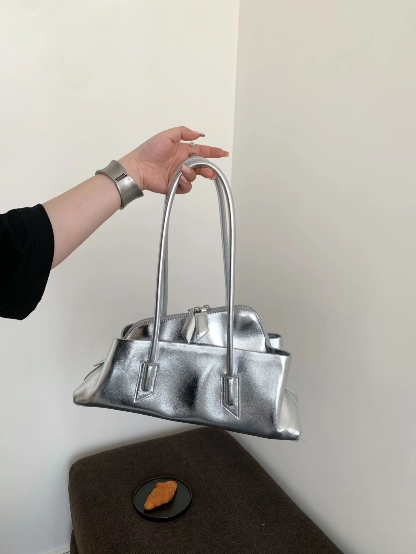 - > Retro padrão de crocodilo grande capacidade sacola design feminino plissado bolsa de ombro de couro feminino diário commuter saco 2025