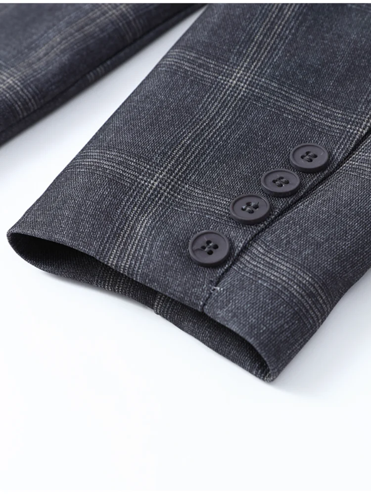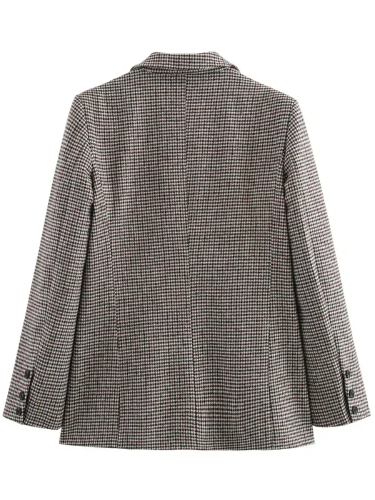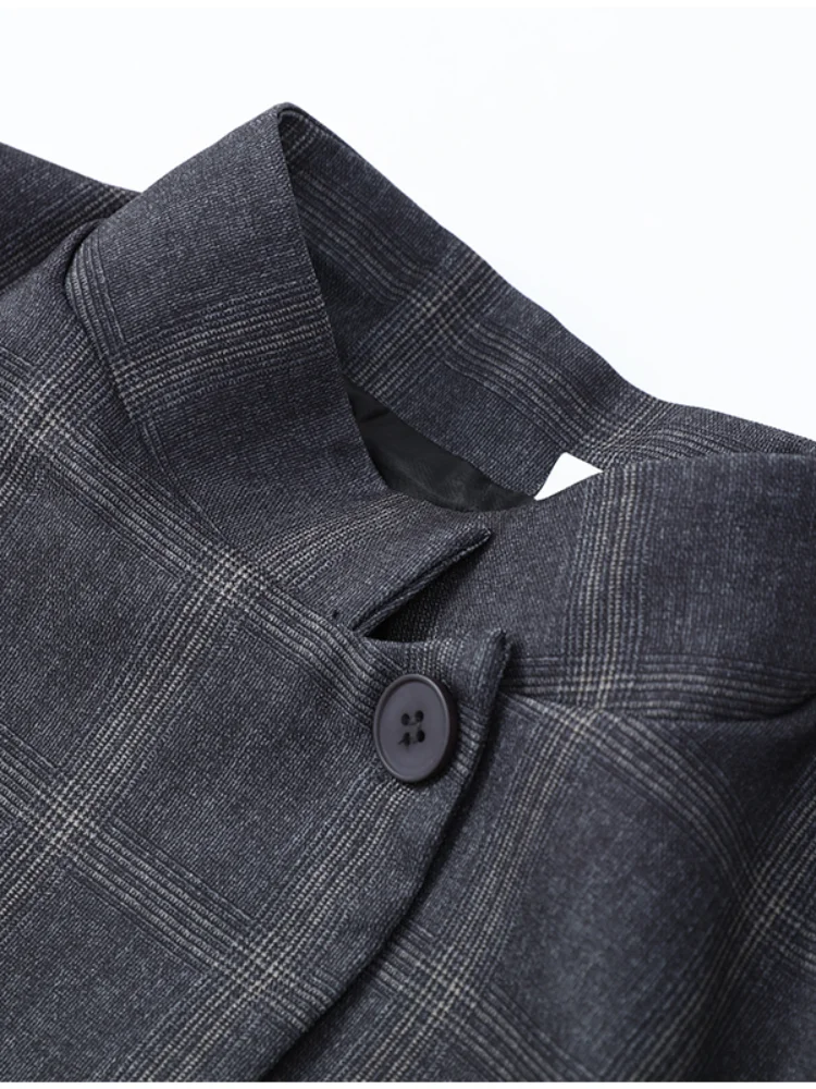 Moda estilo britânico xadrez impresso terno feminino lapela manga longa single-breasted curto jaqueta conjunto senhora dail streetwear