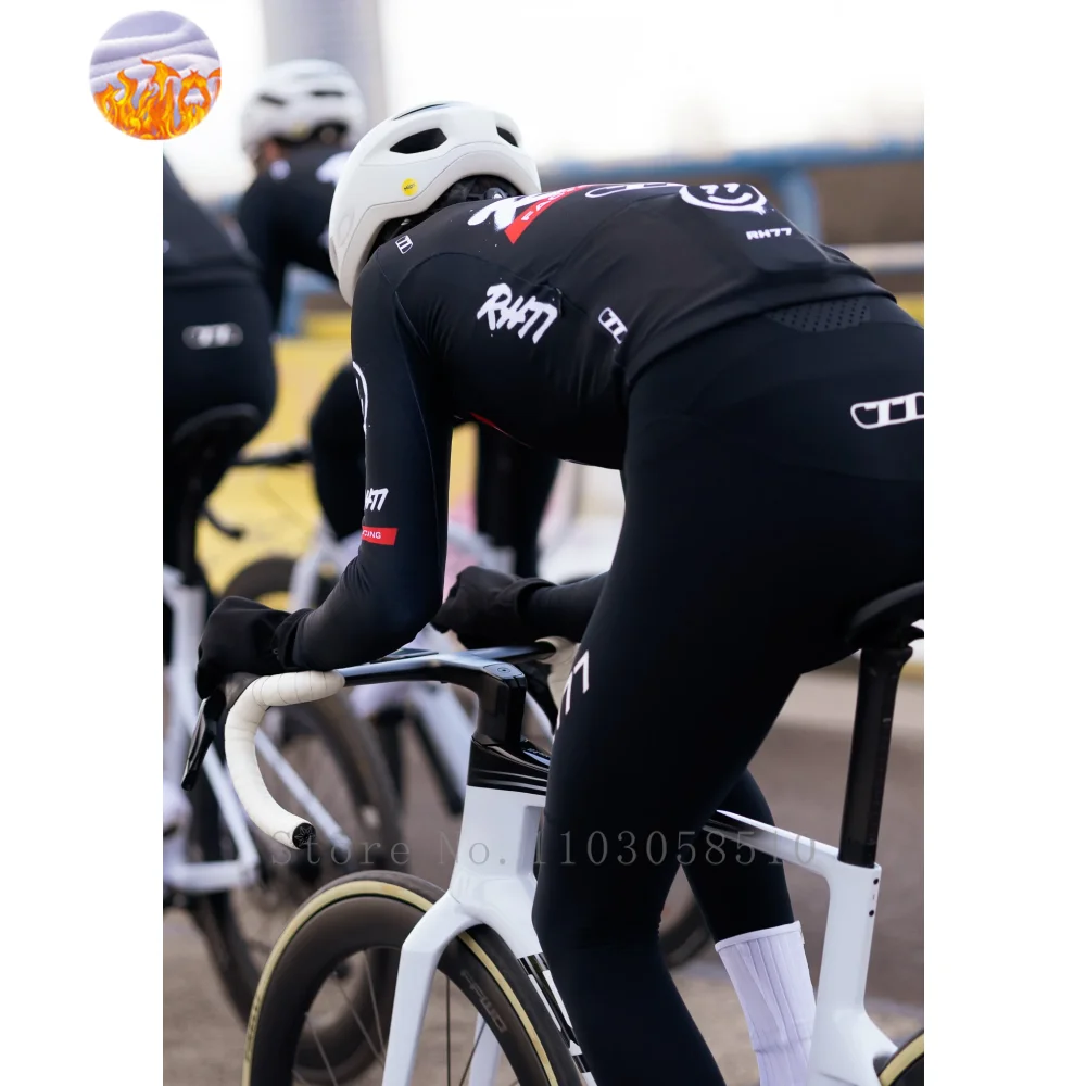 RH77 Camisa térmica de lã para bicicleta, camisa quente de inverno para ciclismo, corte de corrida de estrada, camisa aérea masculina, roupas italianas de manga comprida