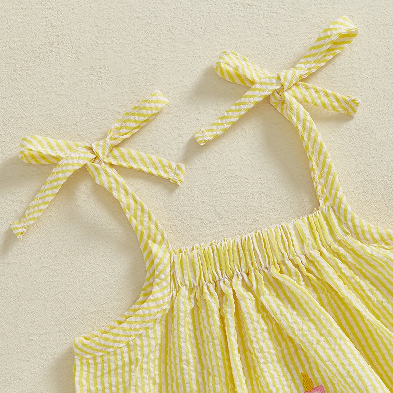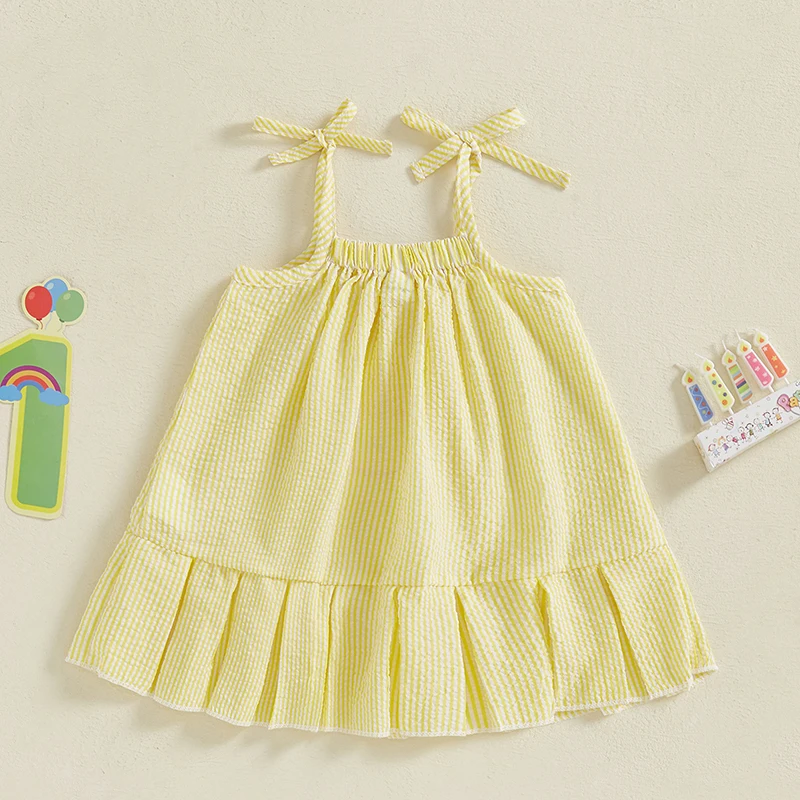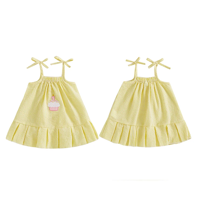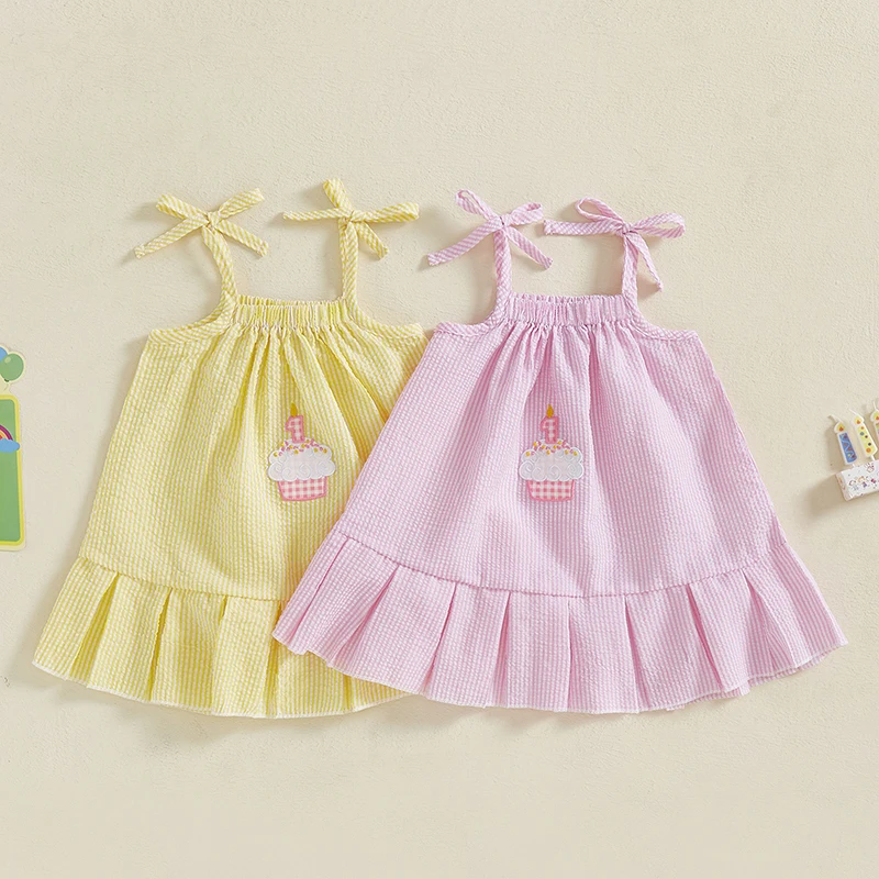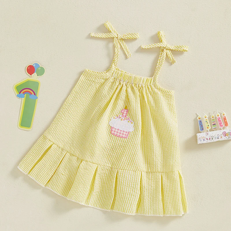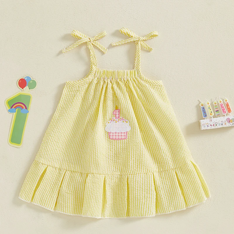 Vestidos de princesa bebê; Roupa de aniversário de menina; Vestidos de verão para bebês com estampa listrada, bordado de bolo, alças finas e sem mangas, design evasê; Faça sua menina se sentir como uma verdadeira princesa