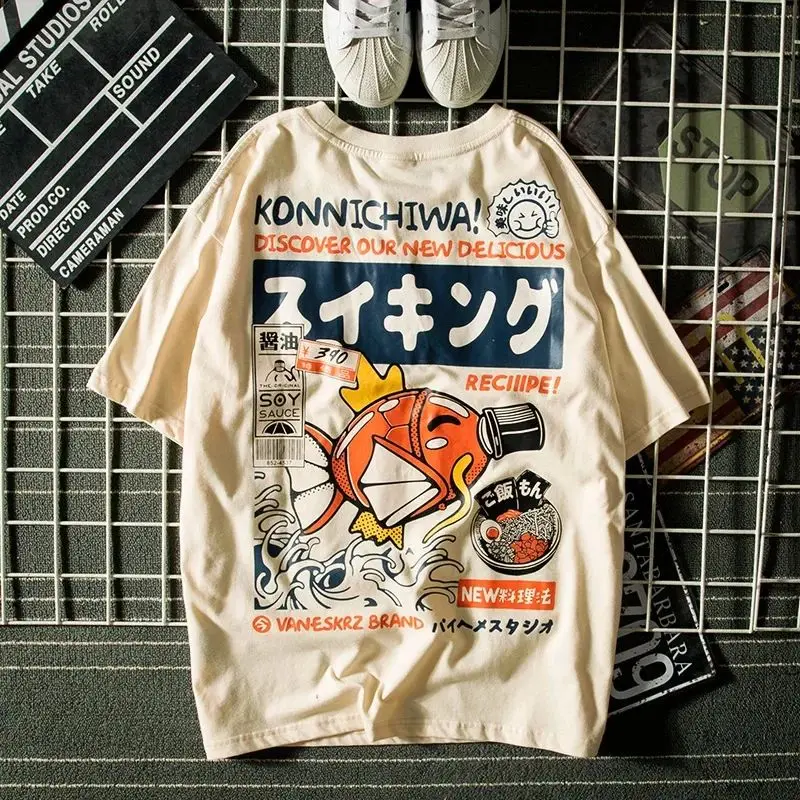 Roupas de verão harajuku estilo japonês camiseta de manga curta maré masculina marca rua solta casal topos roupas femininas
