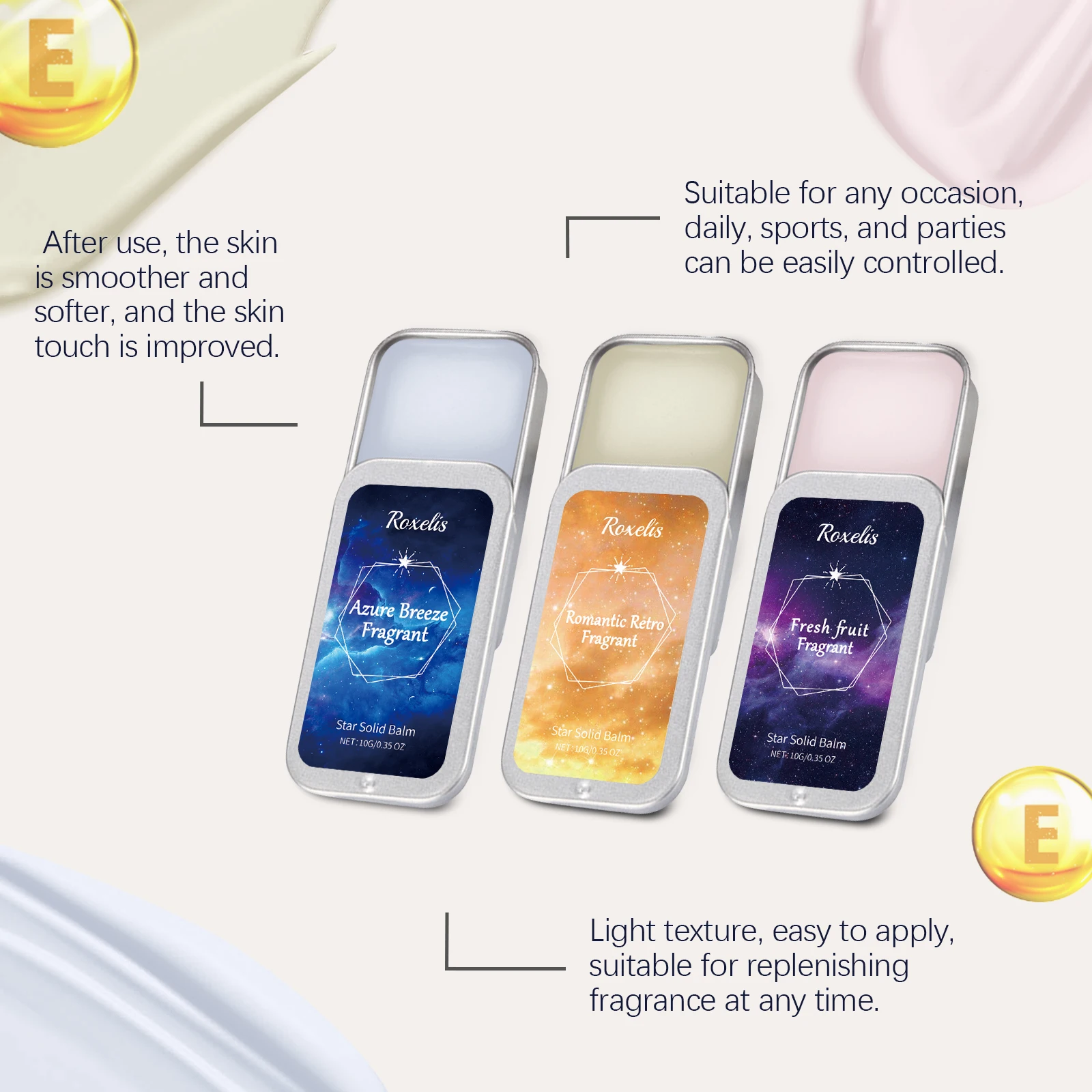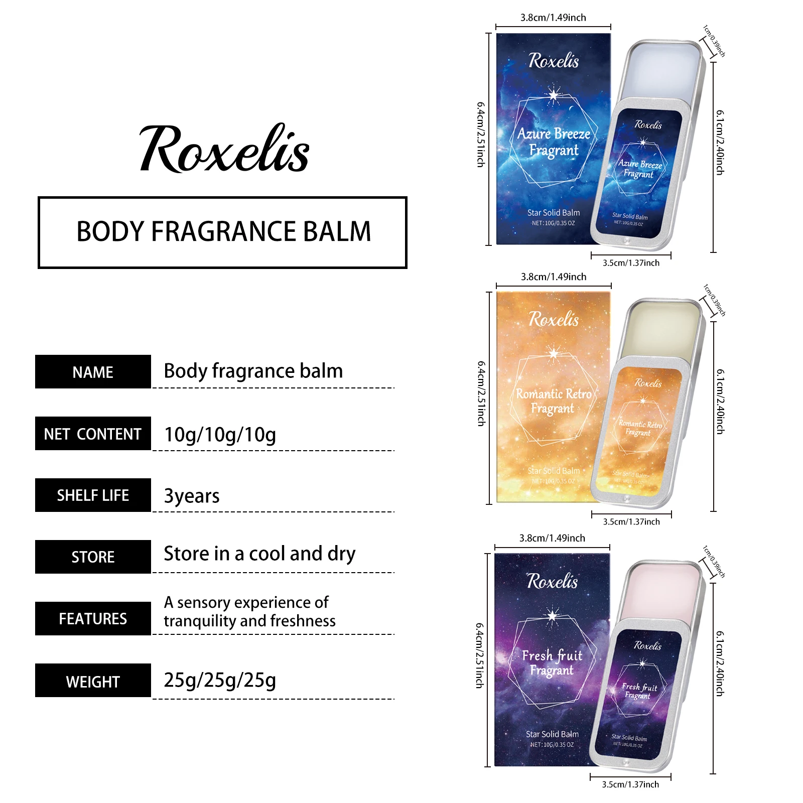 Roxelis feminino perfume sólido portátil bálsamo sólido fragrâncias aroma de frutas feminino perfumes sólidos fragrâncias múltiplas para escolher