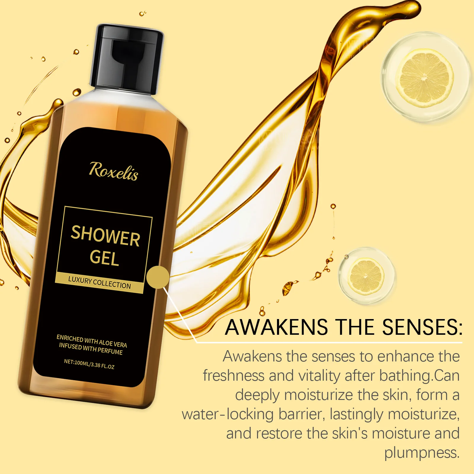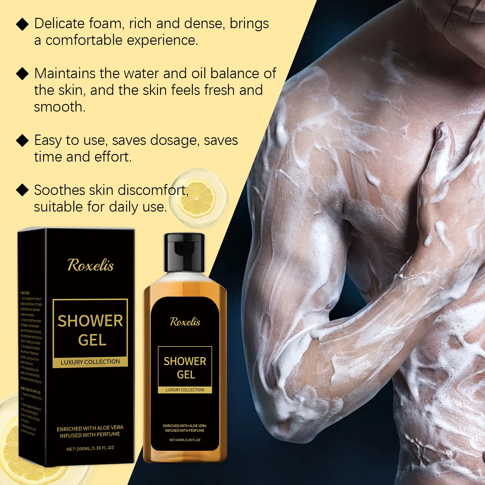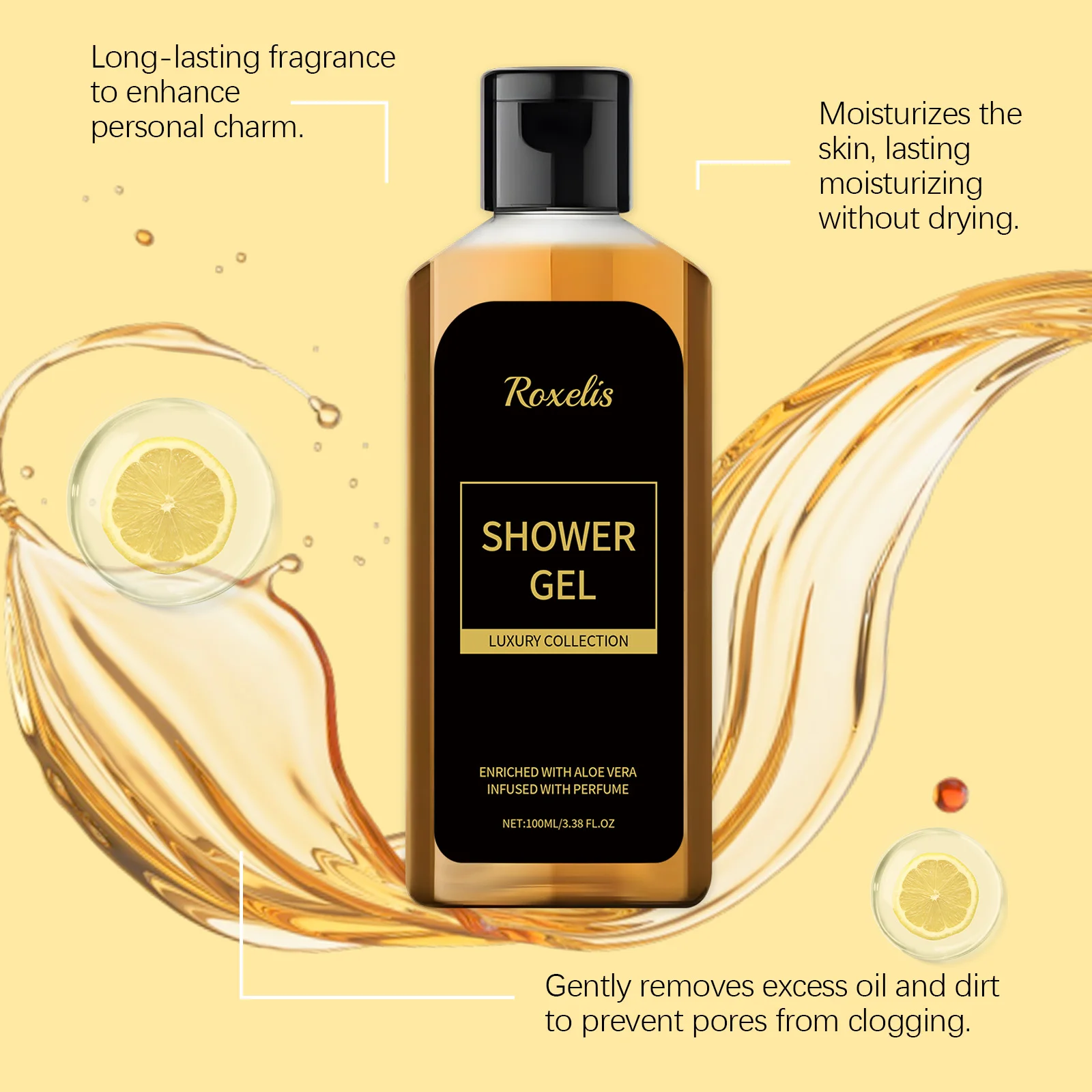 Roxelis Men Shower Wash Feromone Perfume Gel de banho 100ml Feromônio Gel de banho Aloe Gel de banho Unissex Frescura de longa duração