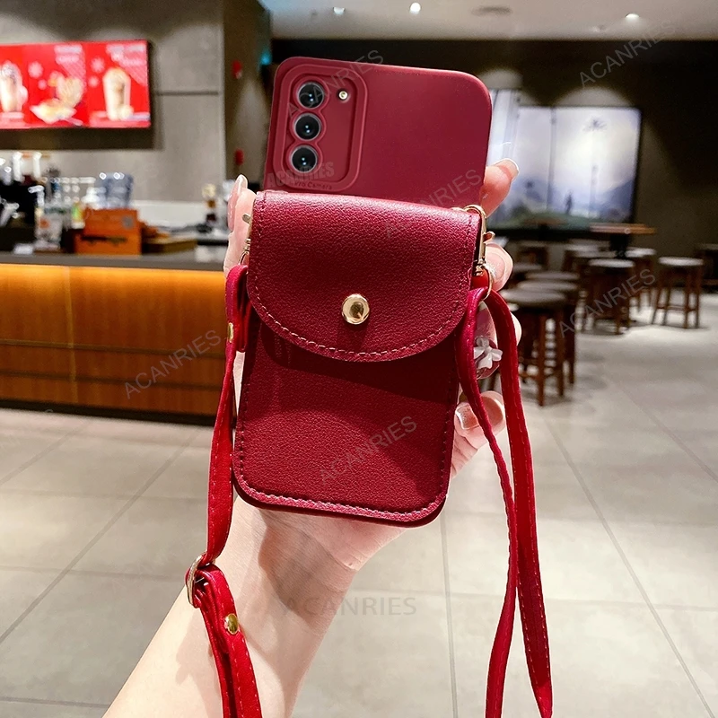 S25ultra s 25 24 23 crossbody slot para cartão saco titular caso para samsung galaxy s25 s24 s23 s22 s21 plus ultra fe cabo capa de silicone