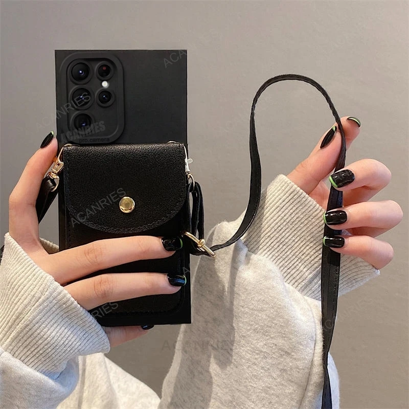 - > S25ultra s 25 24 23 crossbody slot para cartão saco titular caso para samsung galaxy s25 s24 s23 s22 s21 plus ultra fe cabo capa de silicone
