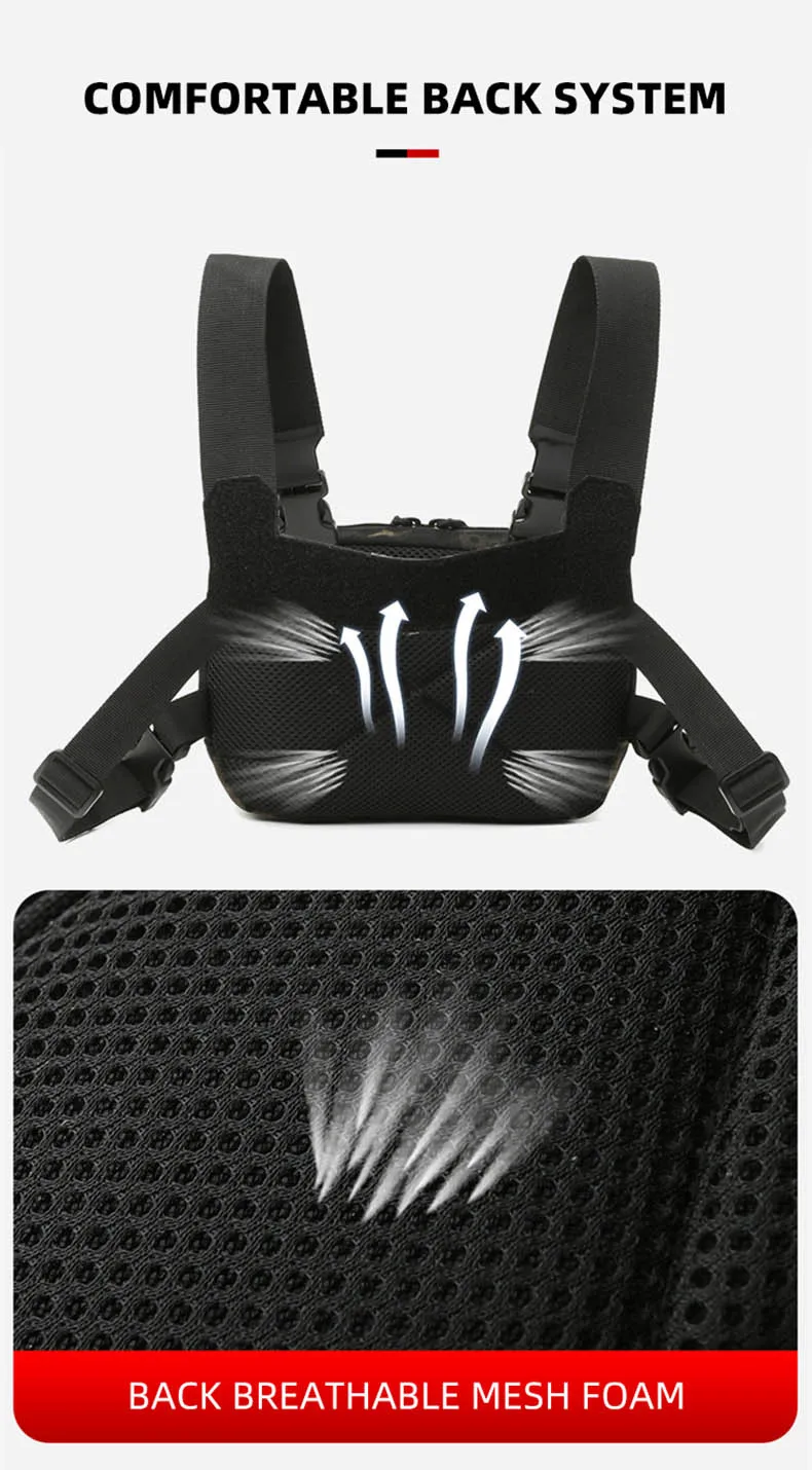 2.Sistema de suspensão Molle de ombro --- Feito sob medida com sistema molle em cada ombro, fácil de transportar pequenas engrenagens táticas como facas ou caneta tática quando atividades ao ar livre, jogos CS.