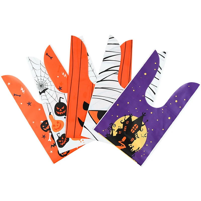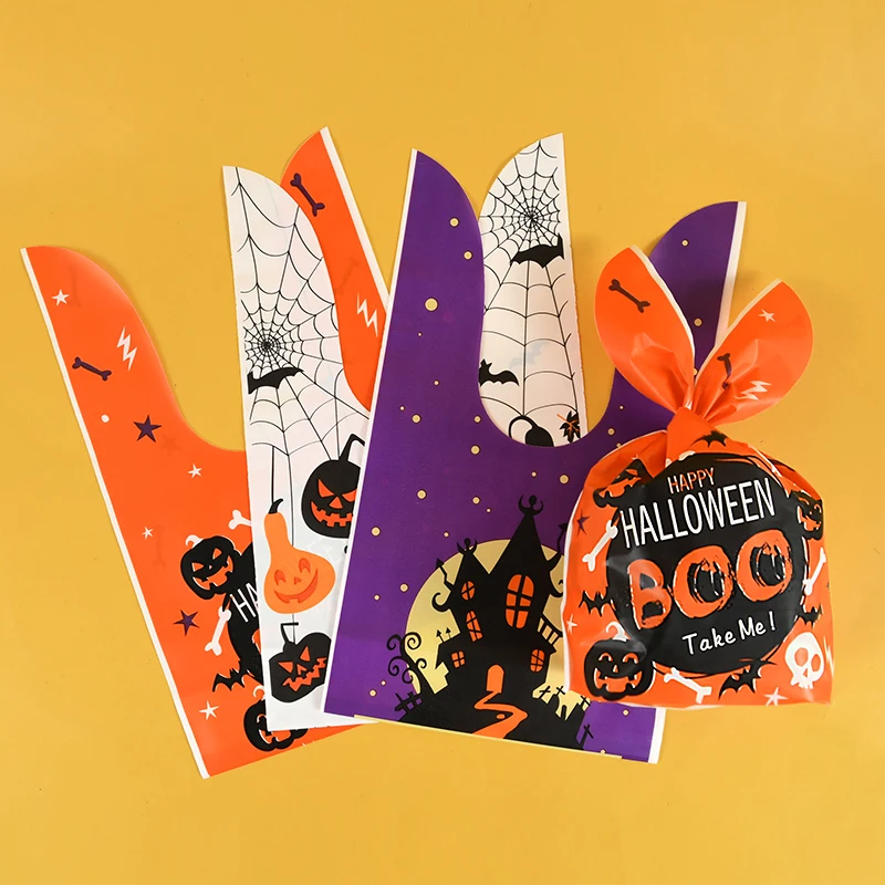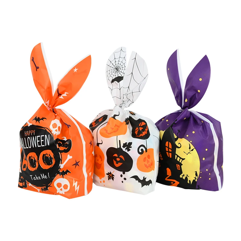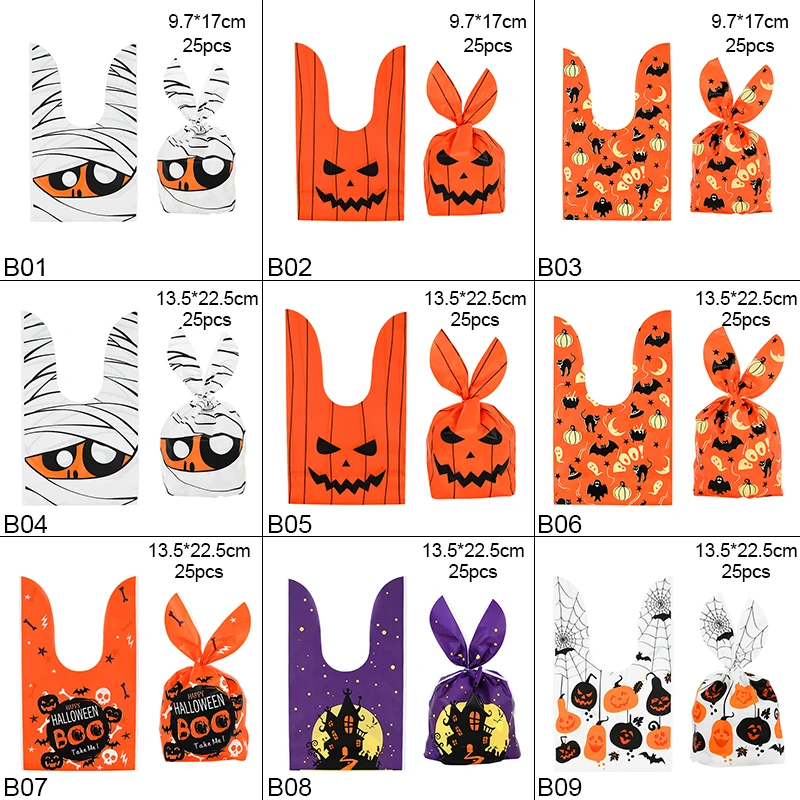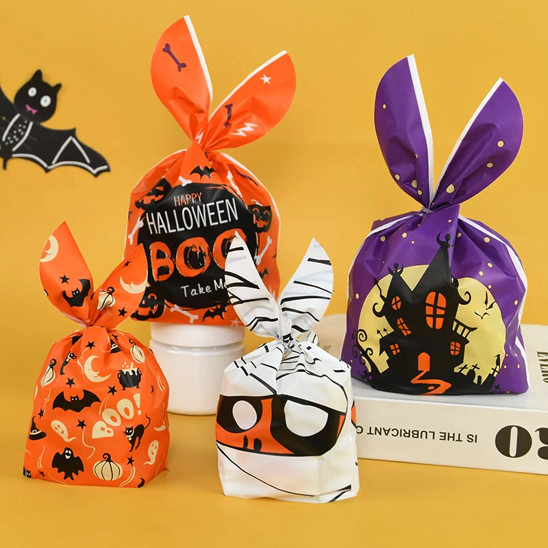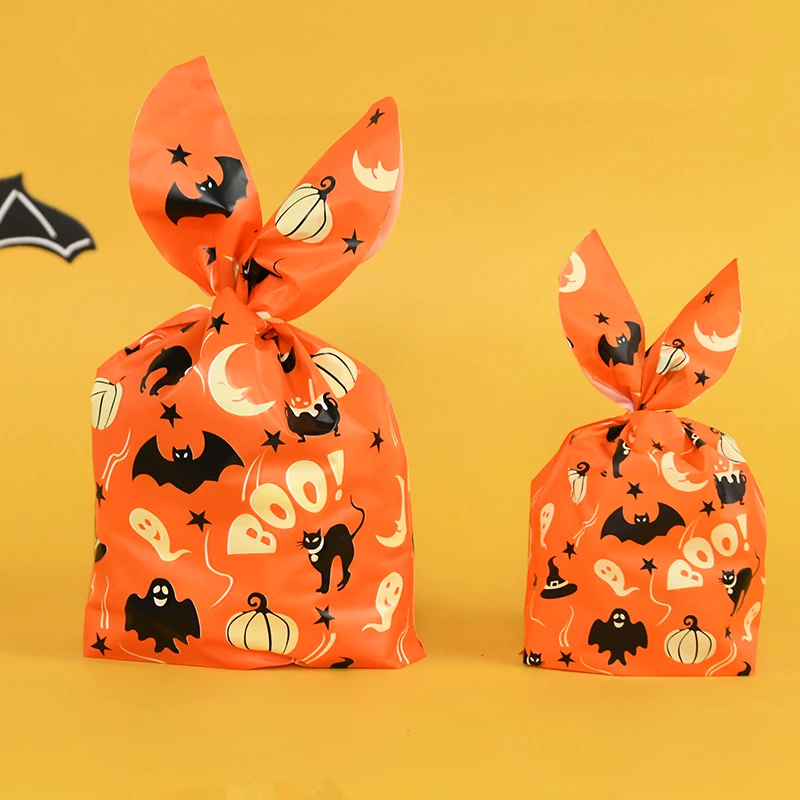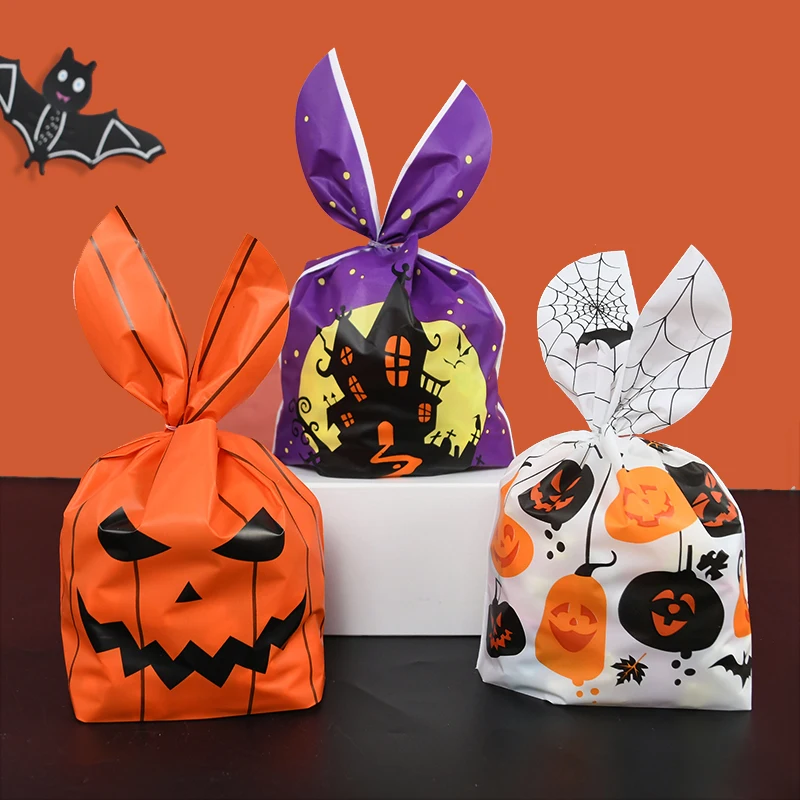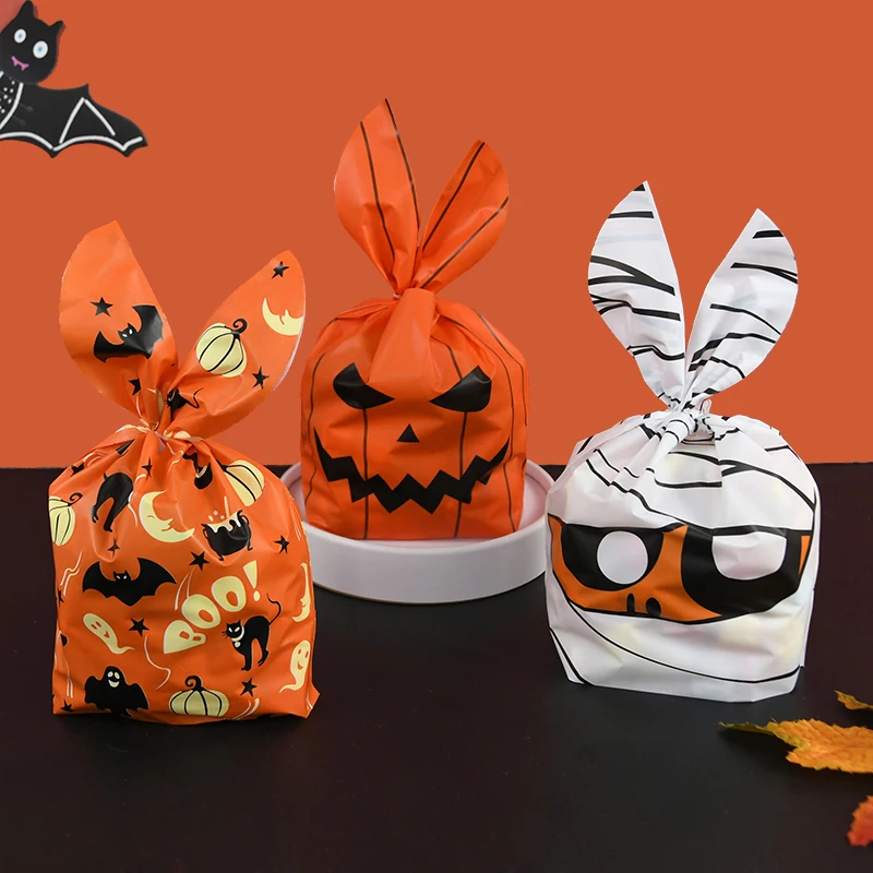 Sacos plásticos para o dia das bruxas, doces, orelha de coelho, abóbora, biscoitos, sobremesa, diy, embalagem, presente, decoração para crianças, 25 ou 50pcs