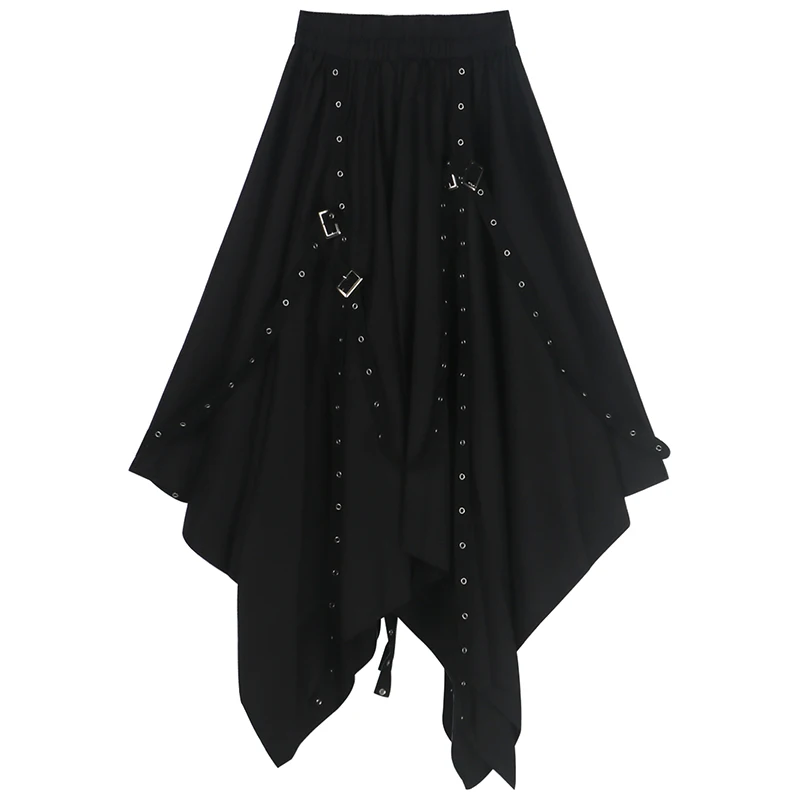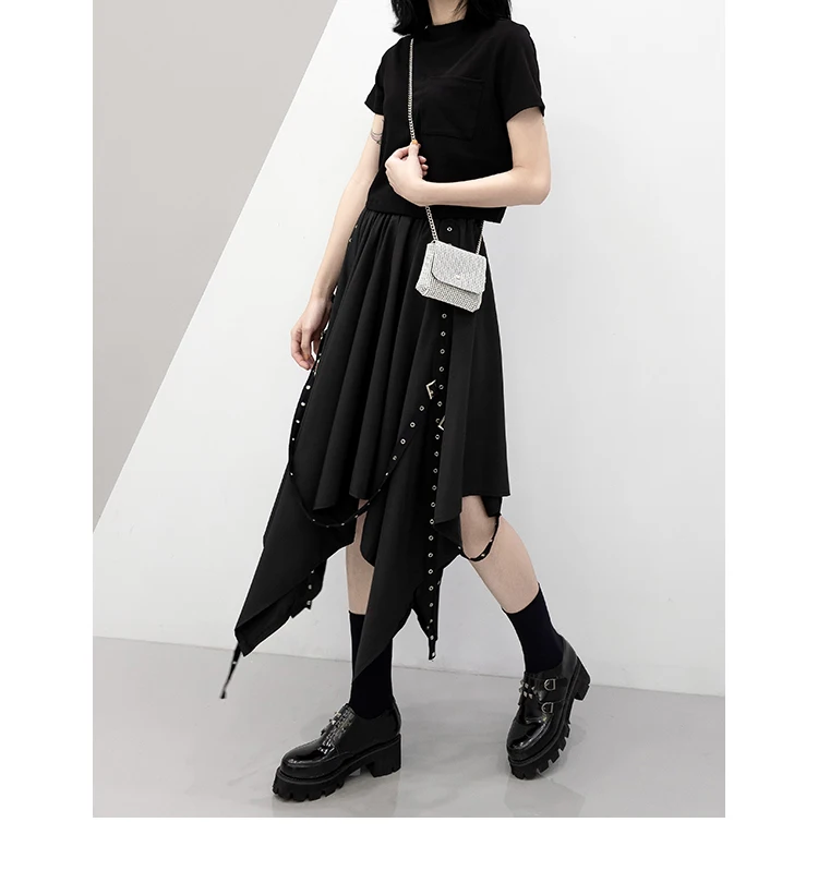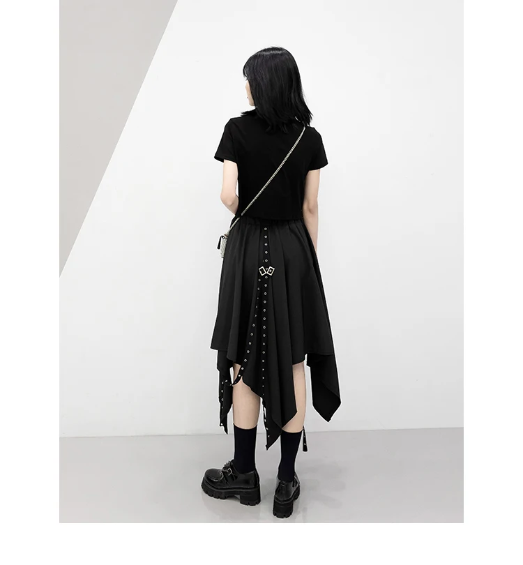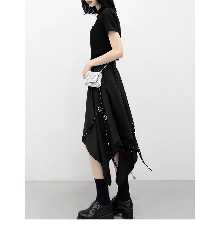 Saia irregular da menina nova gravata escura rua punk vento tecer fivela de comprimento médio y2k saia longa gótica